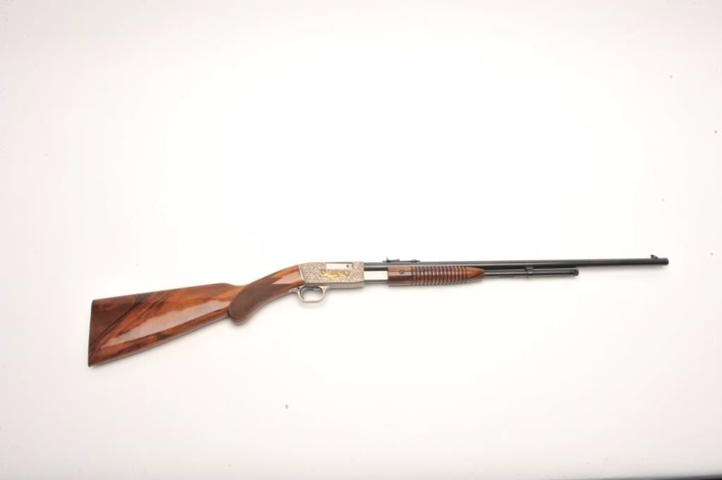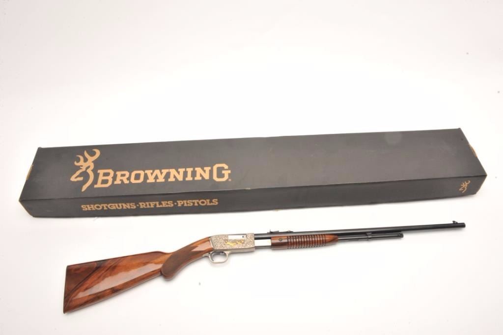 Lot 167 Browning Trombone Grade IV Takedown pump action, .22 LR caliber, serial #166CS-01453. The rifle i