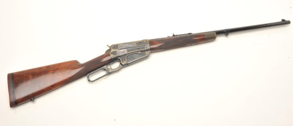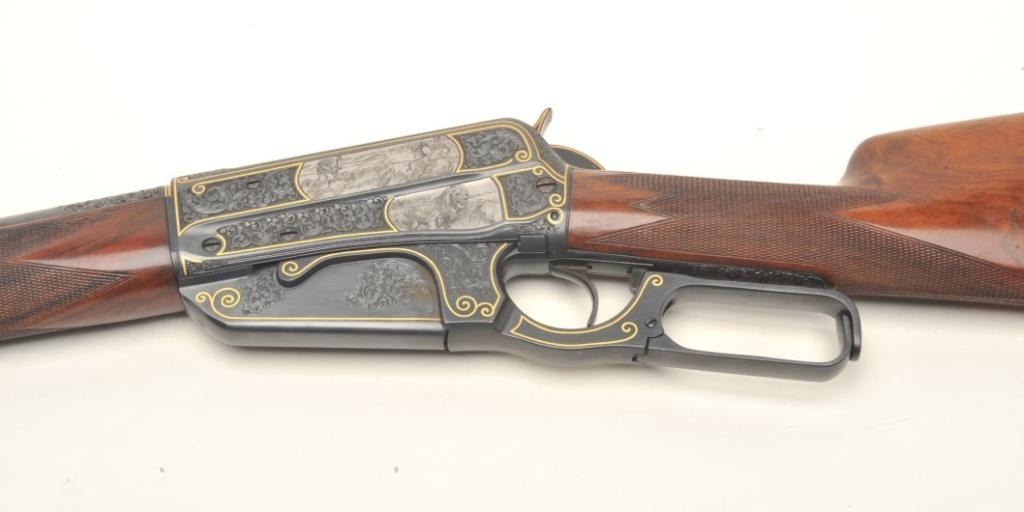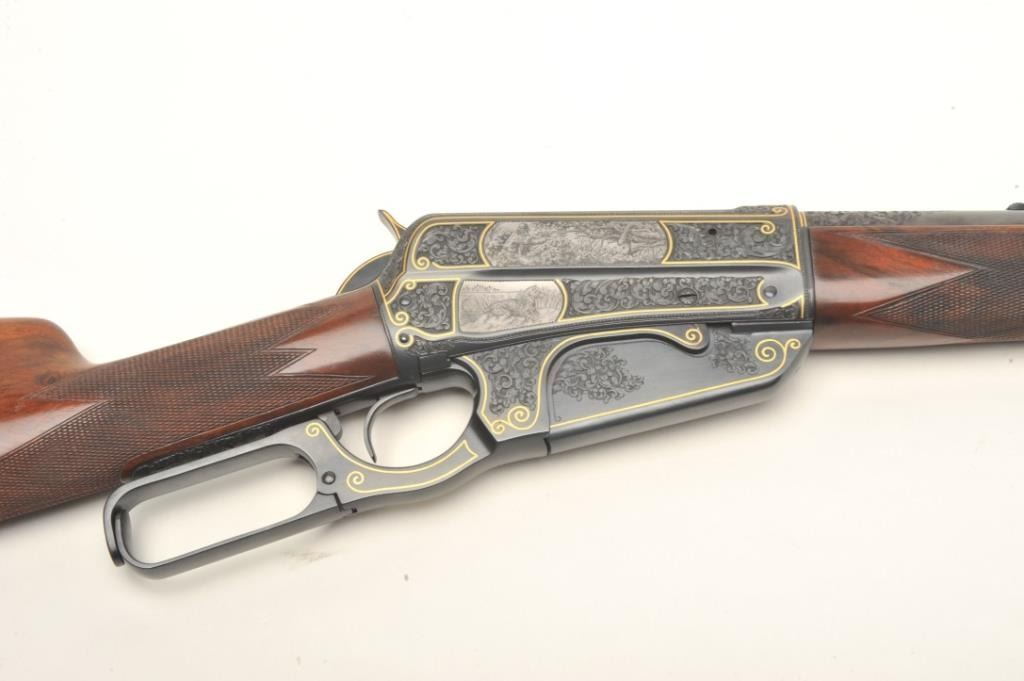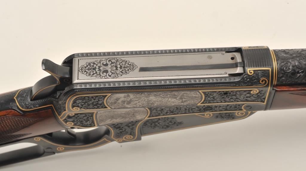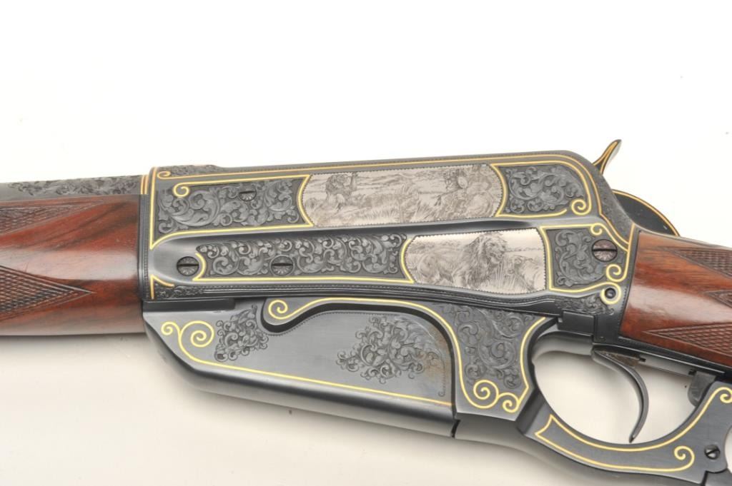 Lot 180 Magnificent engraved Winchester Model 95 lever action rifle, in exhibition style with African Hunt