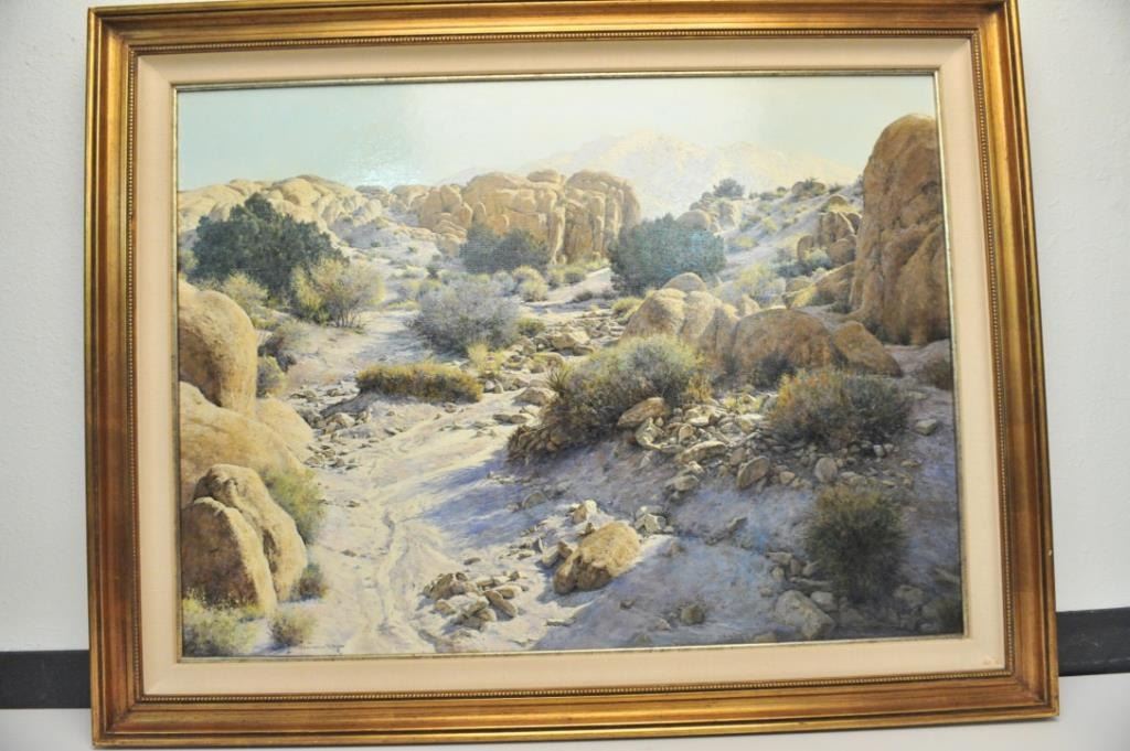 Original oil on canvas of Arizona scene signed lower left “Bernard Wynne” and untitled. Measures 28” x 38”. Born 1920 and died 2009. Est.: $900-$1800