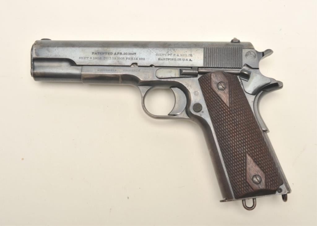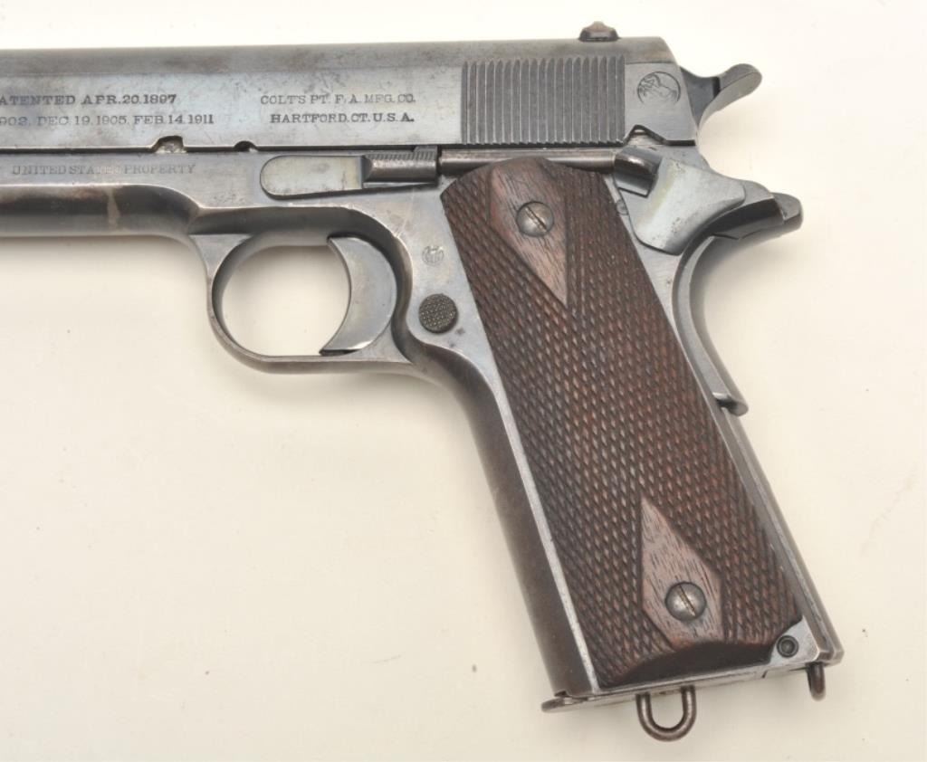 Lot 187 Colt United States Property Model 1911 semi-automatic pistol (ca. 1912), .45 caliber, 5” barrel, b