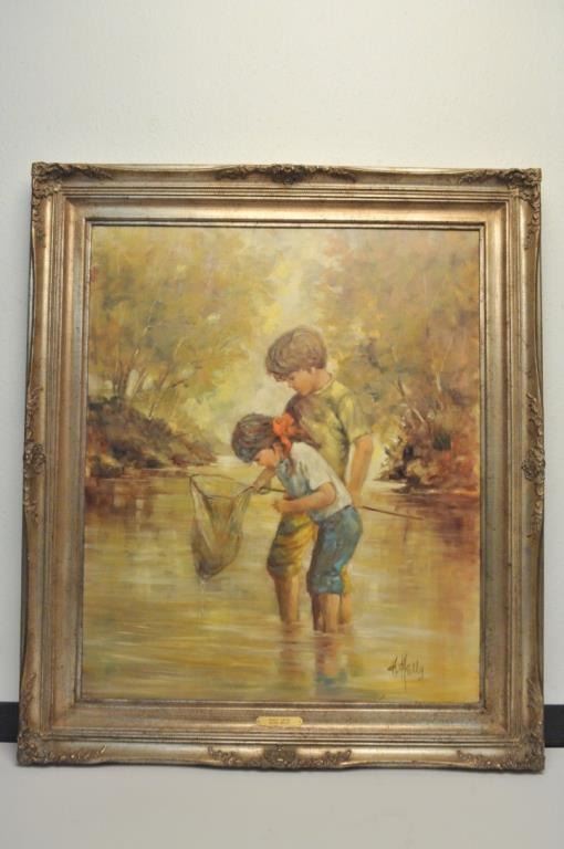 Original oil on canvas signed lower right “K. Kelly” (Kathy) and entitled “Early Catch”. Measures approximately 36” x 30”. Nicely framed with no condition issues. Est.: $750-$1500