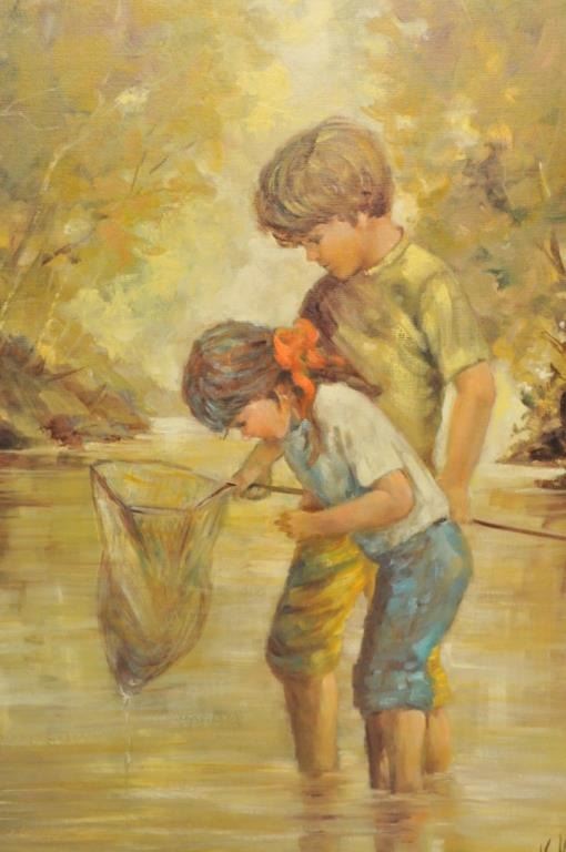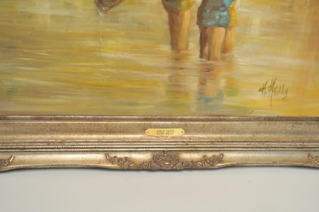 Lot 196 Original oil on canvas signed lower right “K. Kelly” (Kathy) and entitled “Early Catch”. Measures