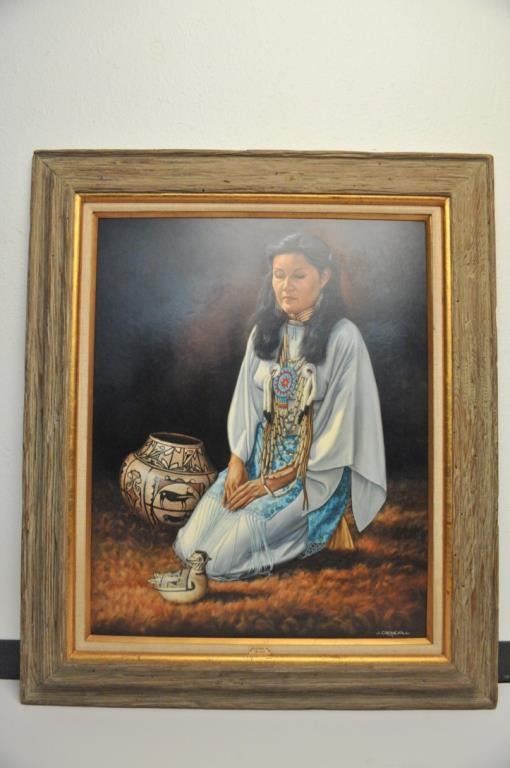 Original oil on board signed lower right “J. (Jerry) Crendall and titled “Reflections of the Past”. An excellent rendition by a well-recognized artist favored by Little John and many art collectors. Measuresapproximately 30” x 24”. No condition issues and nicely framed. Est.: $2000-$4000