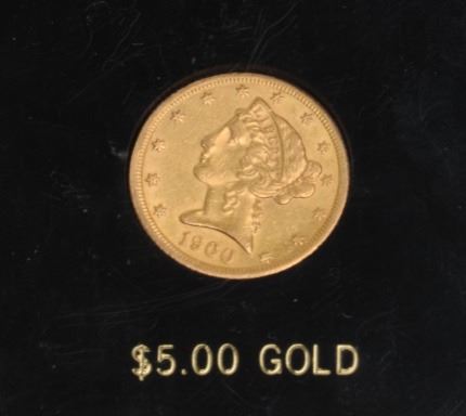 Lot 210 U.S. Liberty $5 gold piece dated 1900-S in old holder; good luster; not graded; from a collector’s