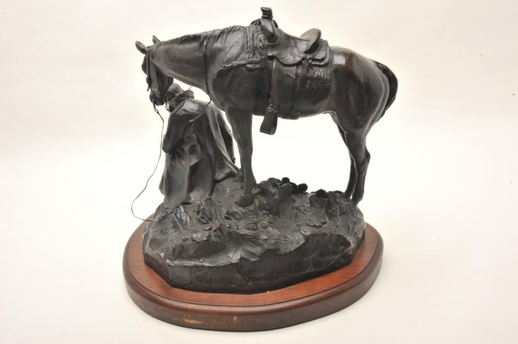 Lot 211 Original Bronze entitled "Thanks for the Rain" by Joe Beeler numbered 8 of 50. Approx. 20" in ht.