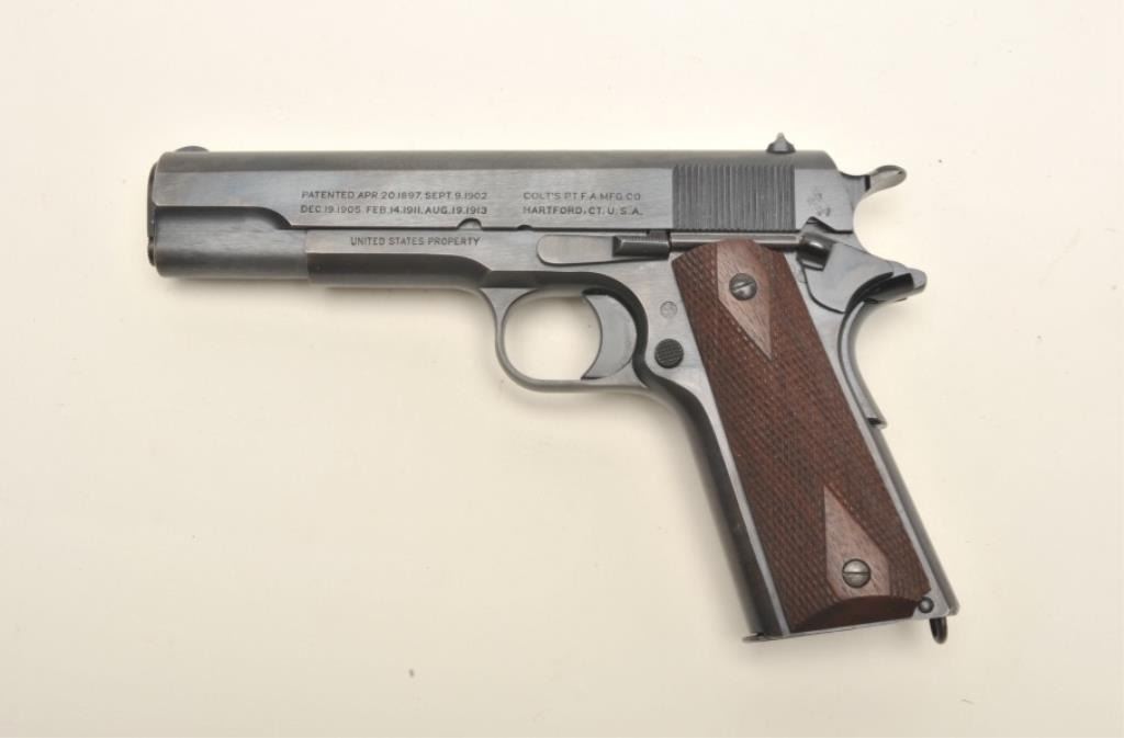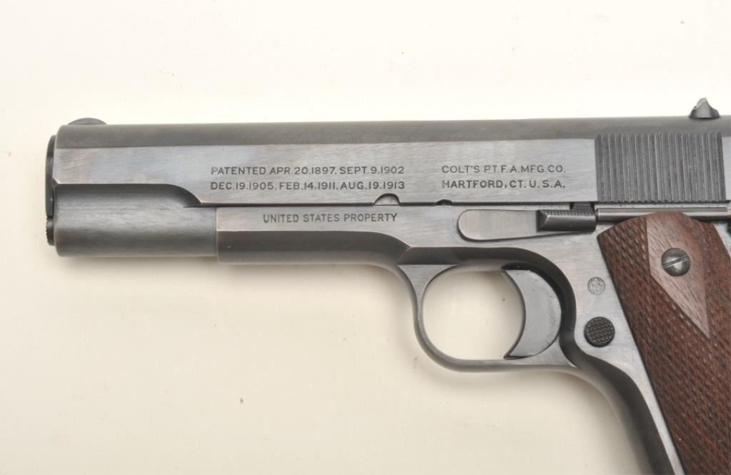 Lot 212 Colt United States Property Model 1911 semi-automatic pistol (ca. 1918), .45 caliber, 5” barrel, b