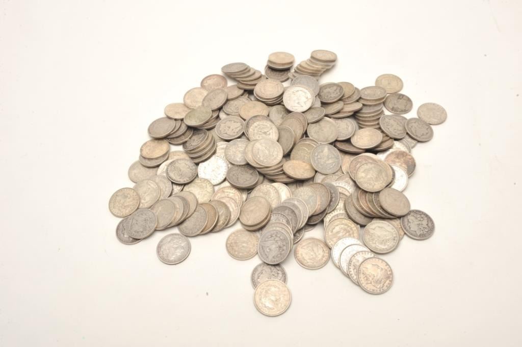 250 Morgan silver dollars in varied conditions and some good dates stored in a locking case. Priced $30-$35 each at shows. Est.: $4000-$8000