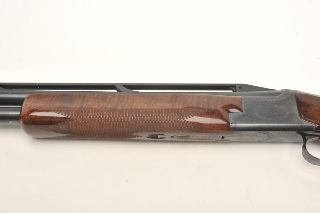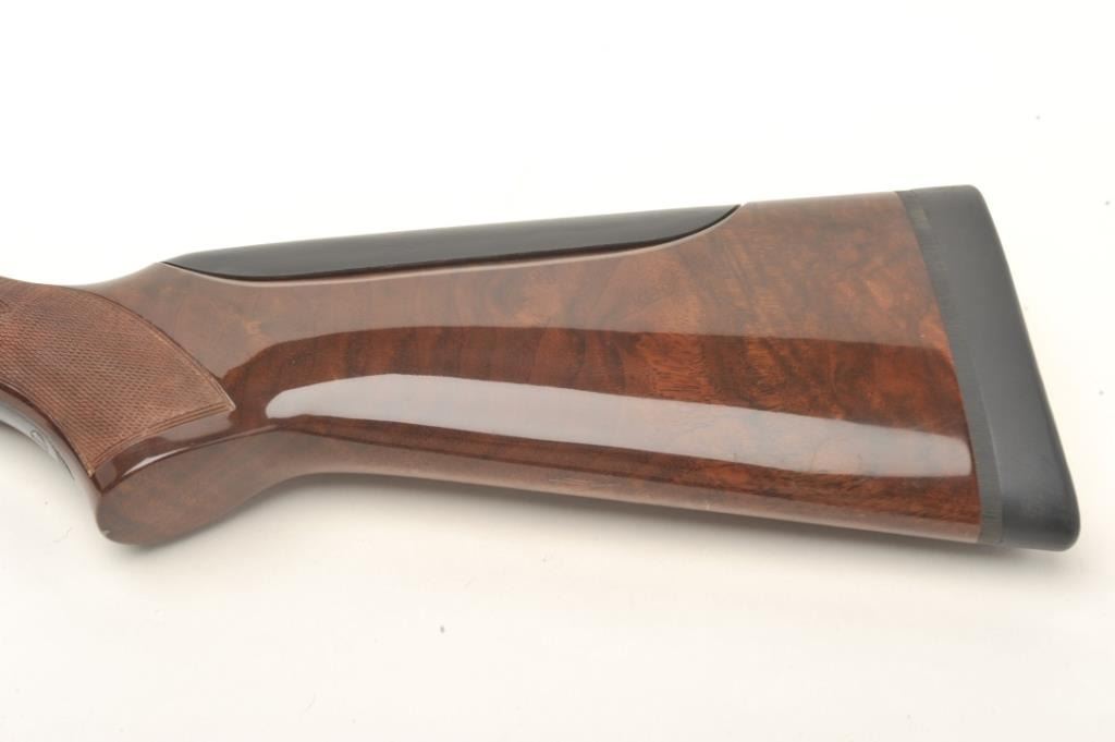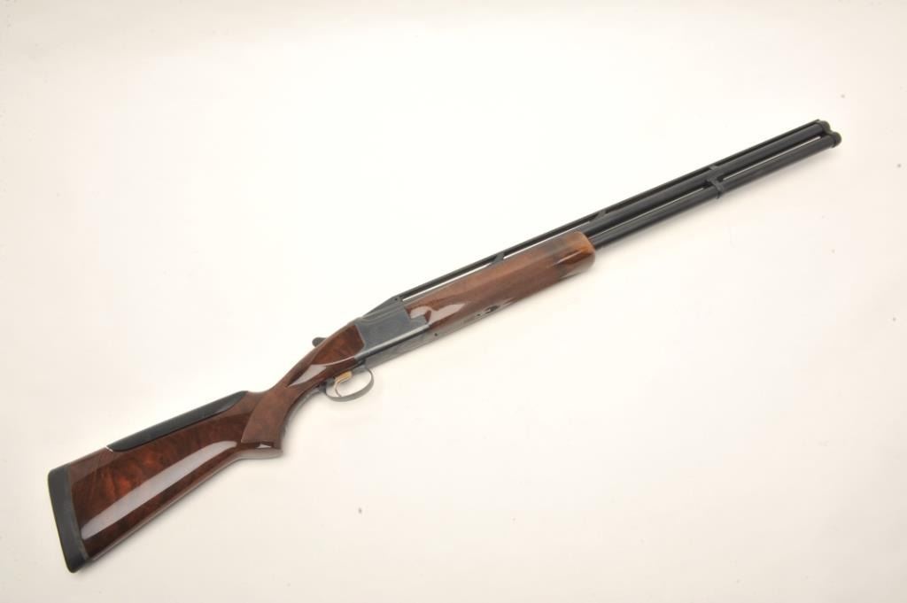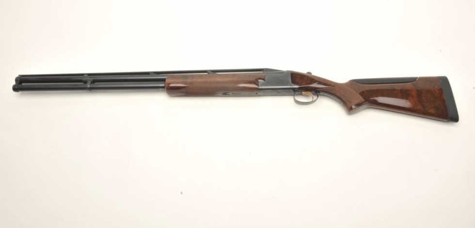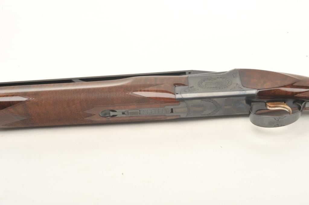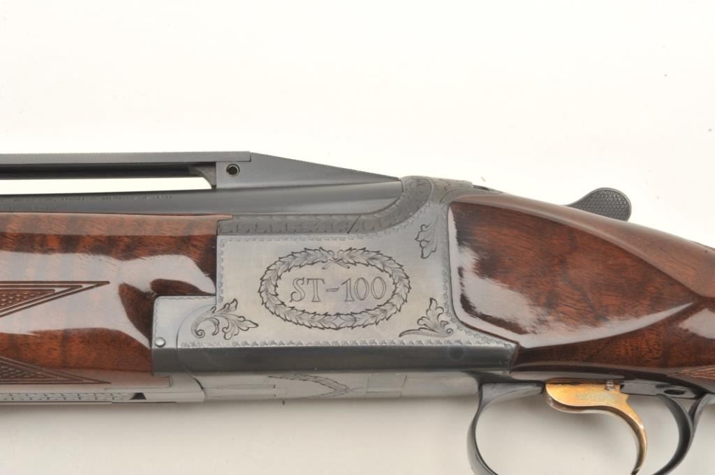 Belgium Browning ST-100 12GA trap shotgun, S/N 144RPO2408 made 1978 and formerly special ordered for Robert Petersen publisher of Guns & Ammo and a noted collector. 30” split barrels, comp. rib, single trigger, ejectors, select checkered wood stocks with adjustable cheek piece and Kickeez recoil pad. Out of production and desirable. (Modern) Est.: $2000-$4000
