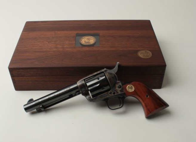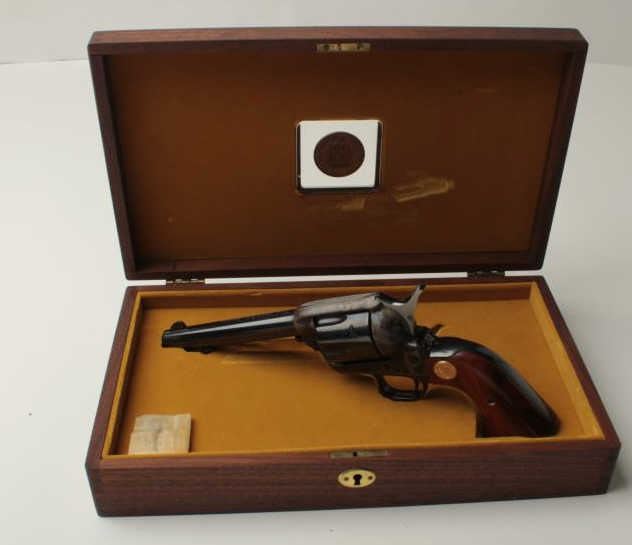 Colt SAA 1971N.R.A. Centennial in .357 Mag caliber with 5 ½” barrel, blue and case hardened finish with commemorative features in original case, S/N NRA6568 in like new condition with slip cover. See next lot forconsecutive serial number. (Exempt/No PPT) Est.: $1250-$2500