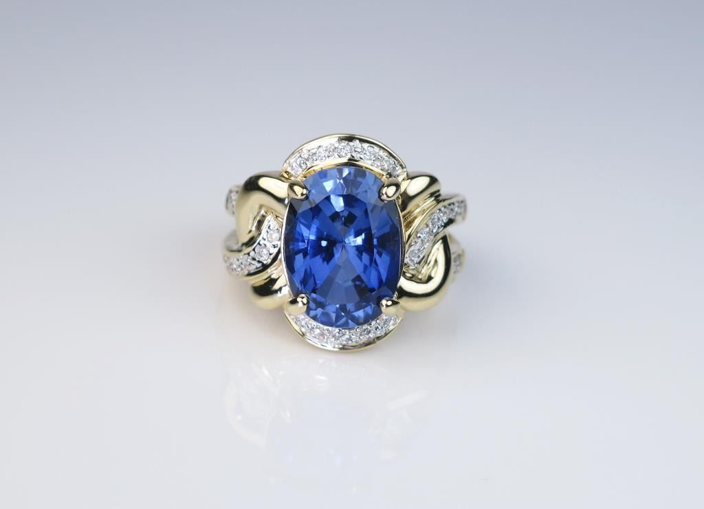 Lot 237a Magnificent Estate Piece 7.34 carat Ceylon colored Blue Sapphire and Diamond Ring featuring a fabu