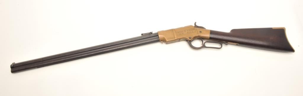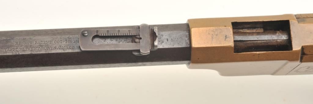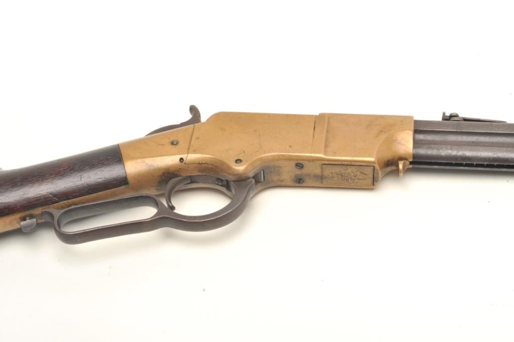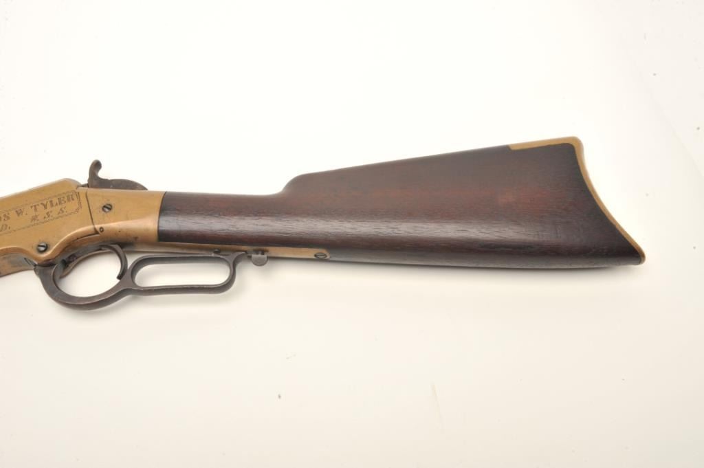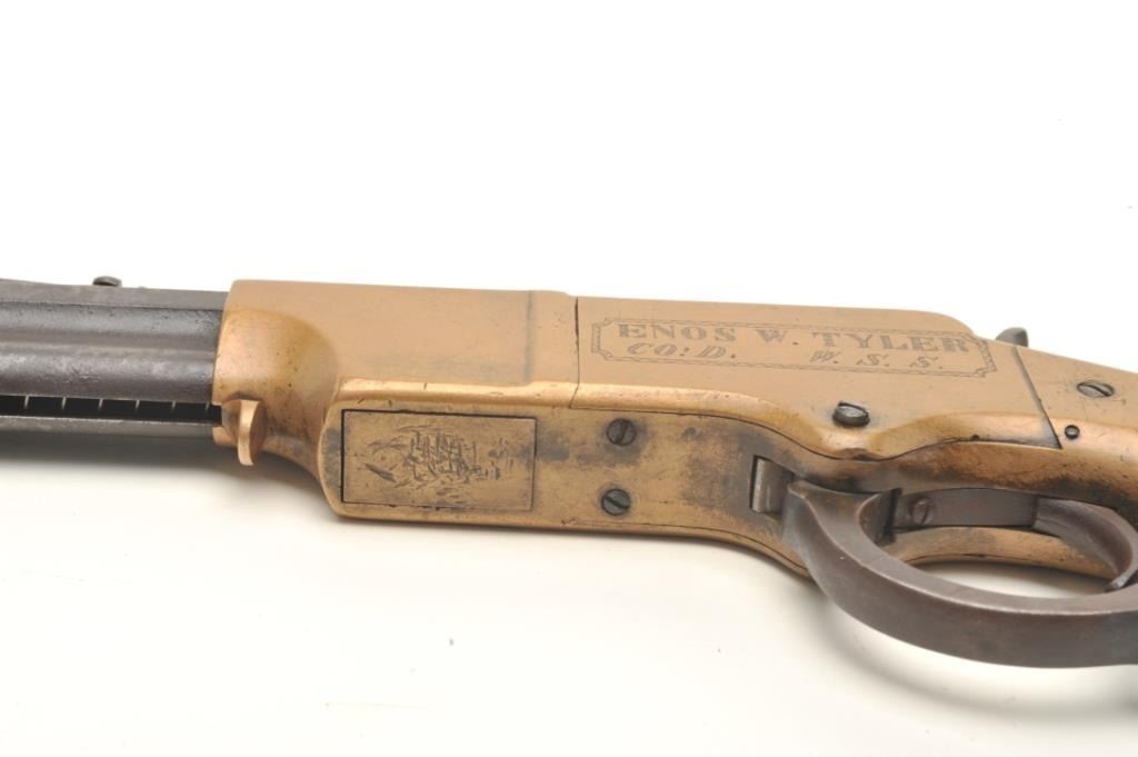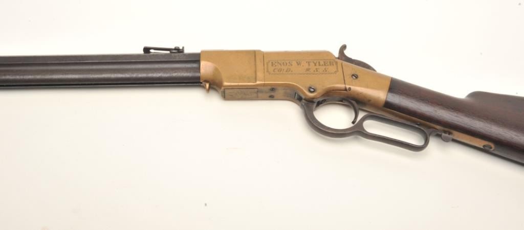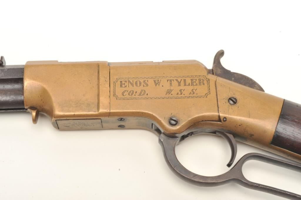 Lot 244 Important original period inscribed Henry rifle, S/N 1672; inscribed “Enos W. Tyler/Co. D/W.S.S.”.