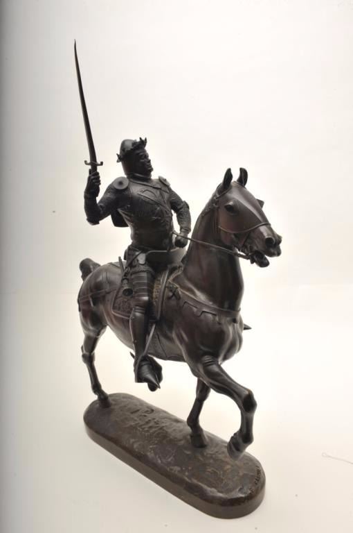 Lot 250a Late 19th to early 20th century original bronze entitled “Bertrand Dugueslin” by E. Fremiet. Shows