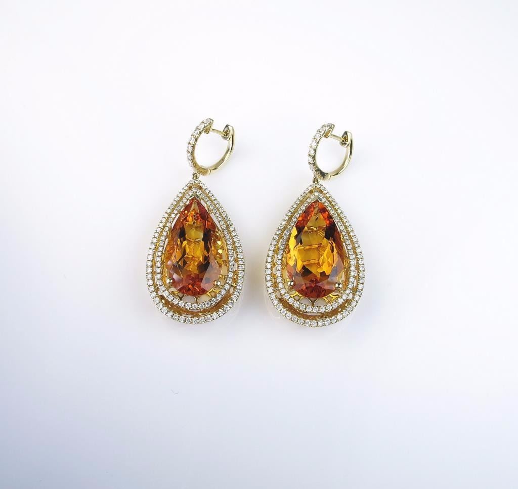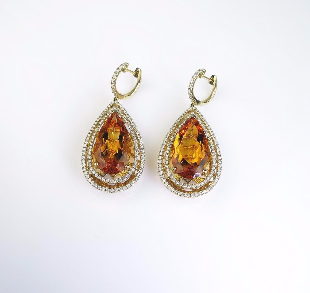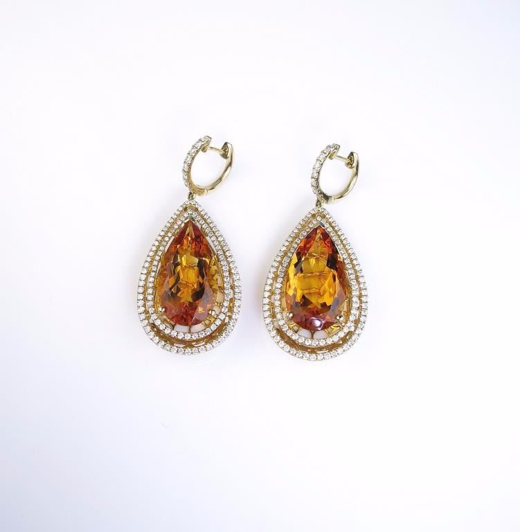Lot 250b Spectacular 30.00 carat Citrine and Diamond Dangle Earrings featuring 2 richly colored Extra FINE