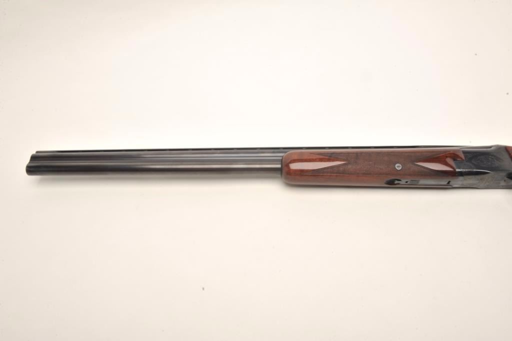 Early Belgium Browning 12 GA super-posed lightning shotgun in near mint condition, S/N 68717. The barrels measure 28” and choked * full over ** modified. Single trigger, auto ejector, original hard rubber butt plate.98%-99% plus overall showing little to almost no use. A 9.9 On a 1-10 scale. Collector’s quality. (Modern) EST.: $1400-$2800