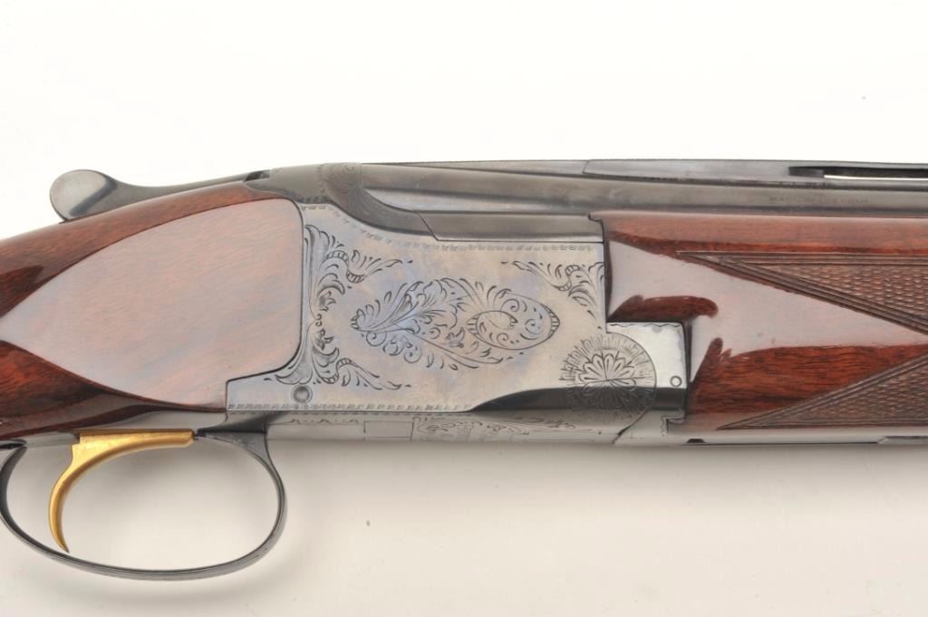 Lot 251a Early Belgium Browning 12 GA super-posed lightning shotgun in near mint condition, S/N 68717. The