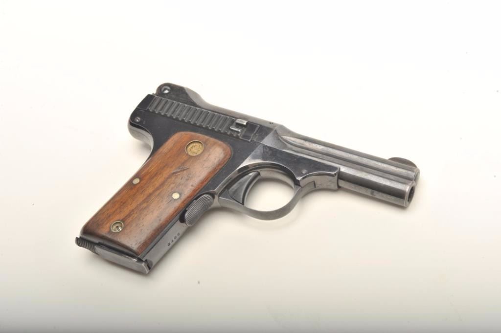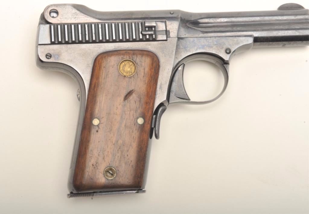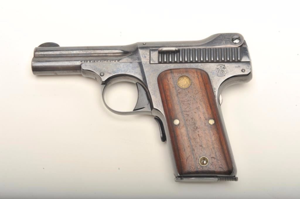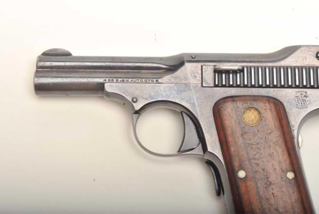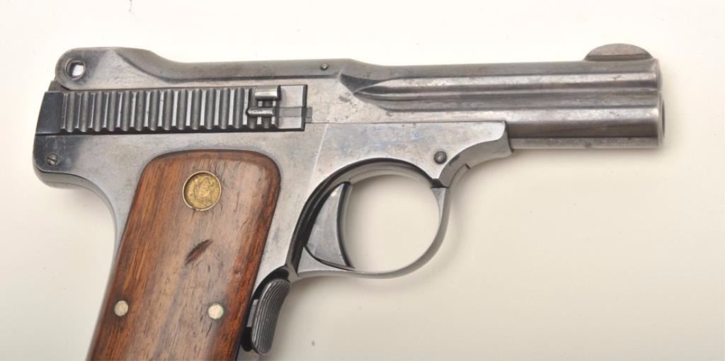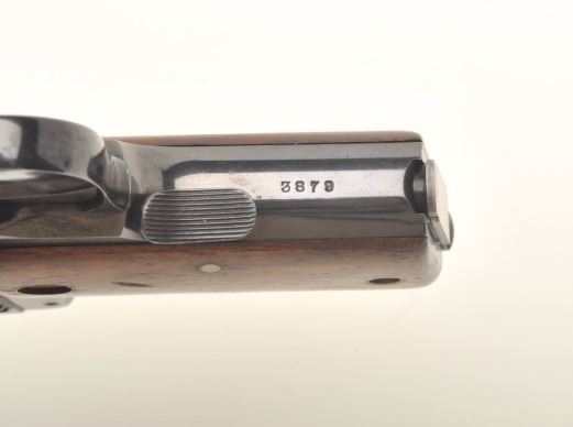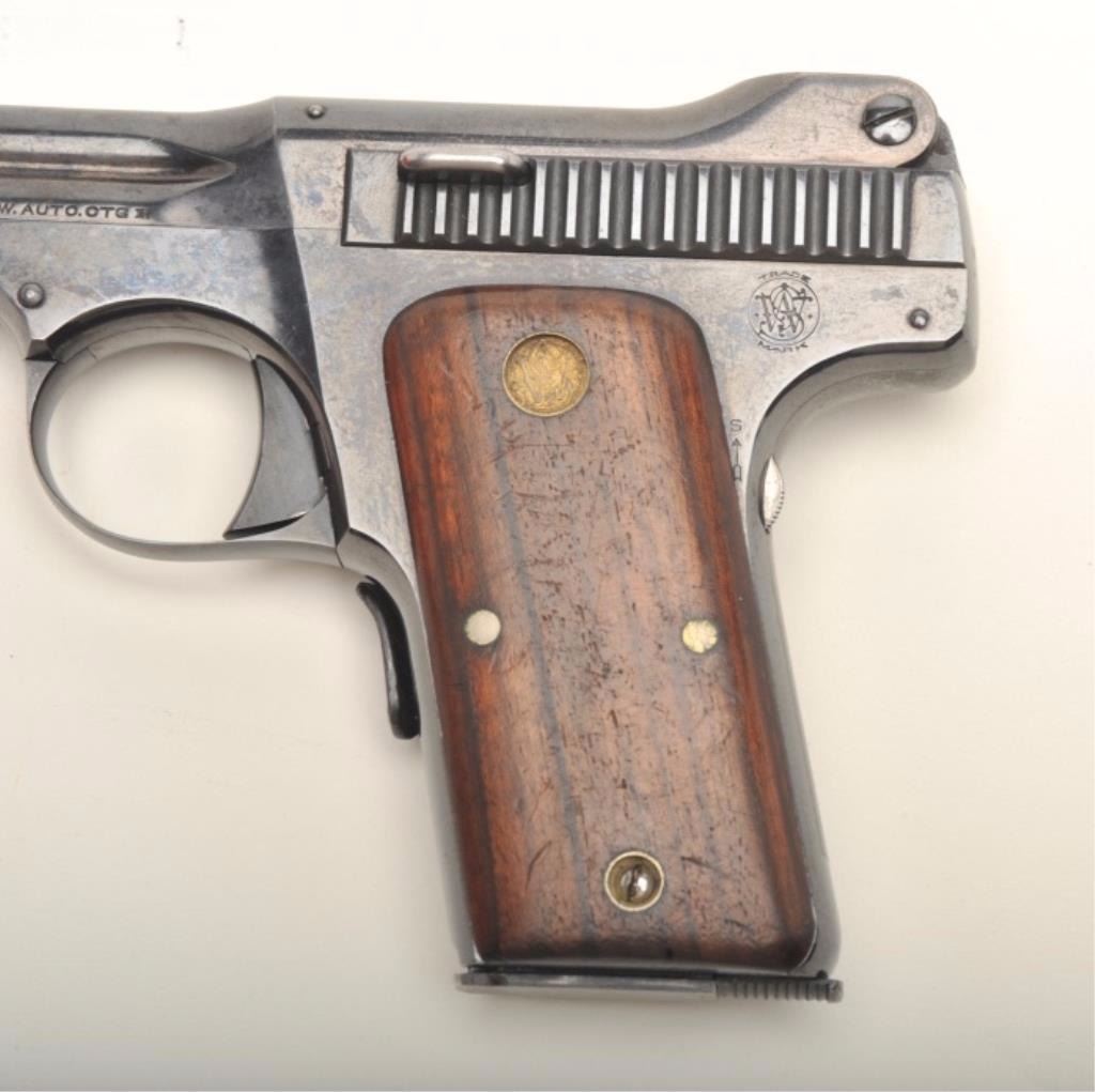 Lot 255a S&W .35 caliber semi-auto pistol in near fine condition S/N 3879. This pistol shows 80%-90% origin
