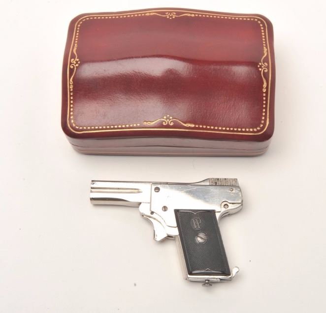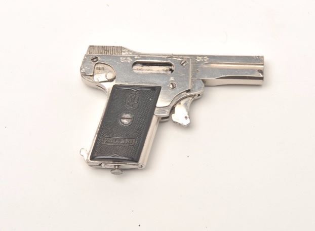 Lot 275 Kolibri 2.5mm Semi-Auto miniature pistol with rare factory original nickel finish and hard rubber