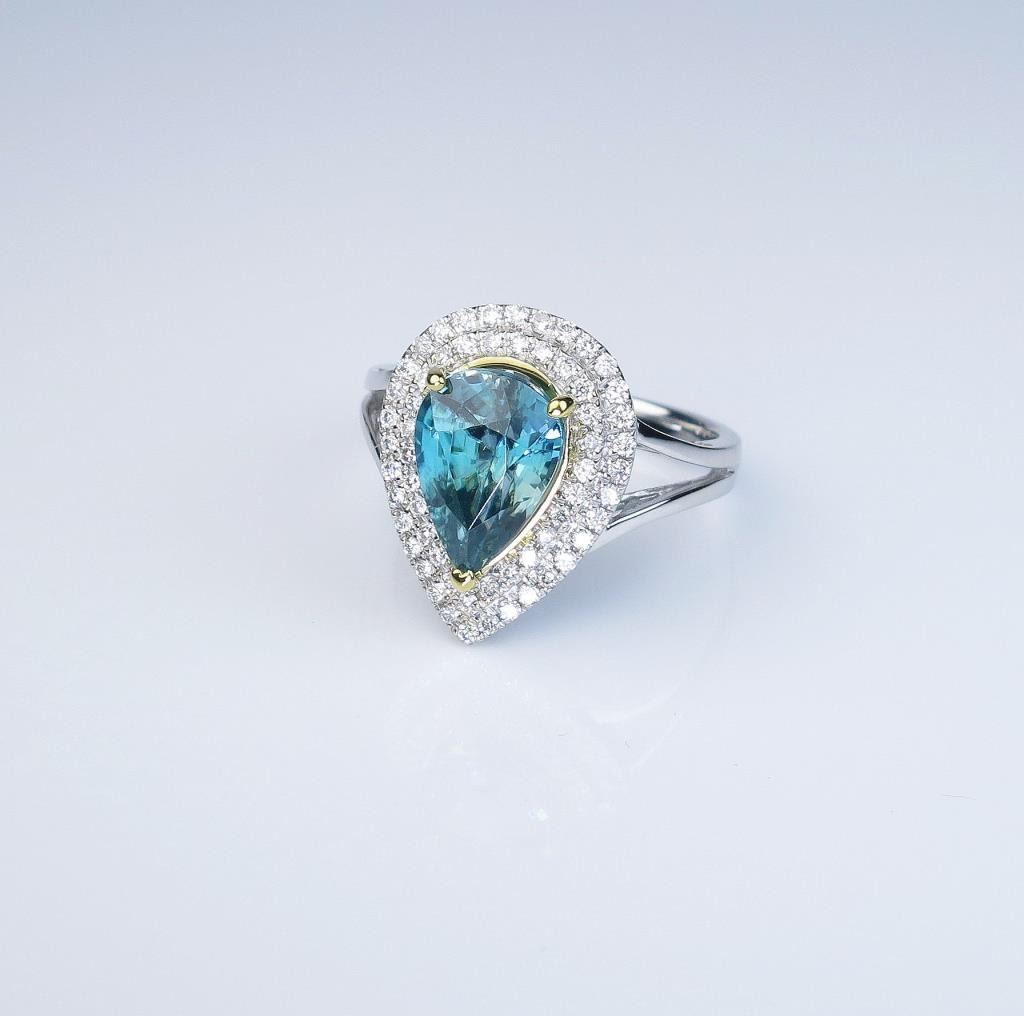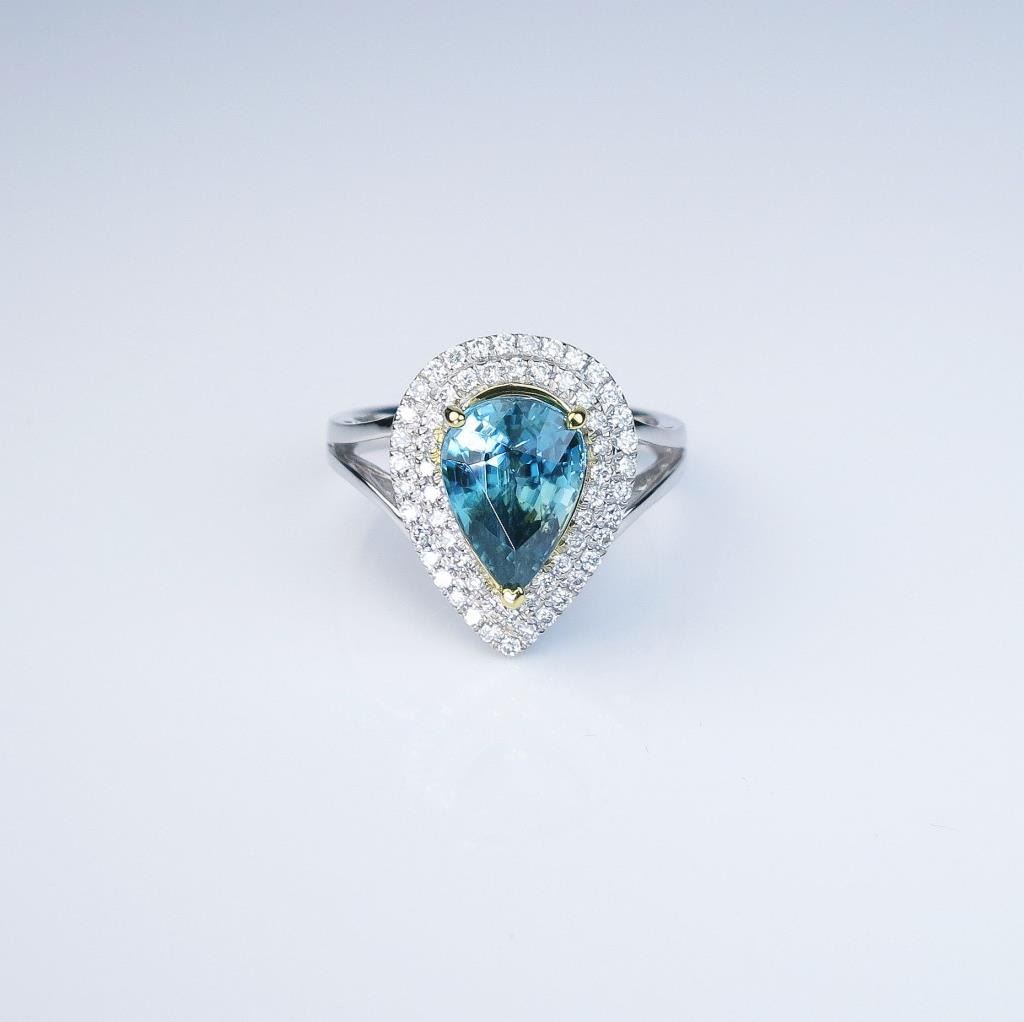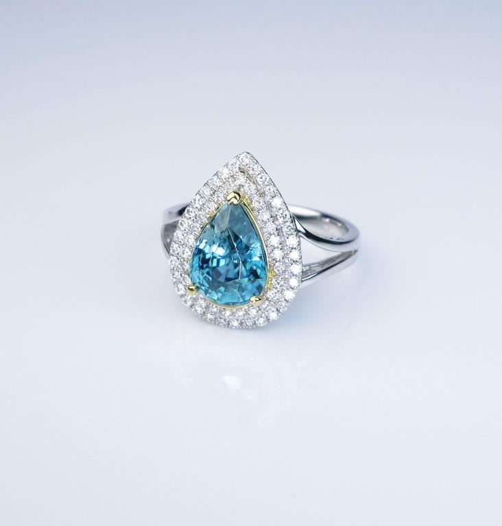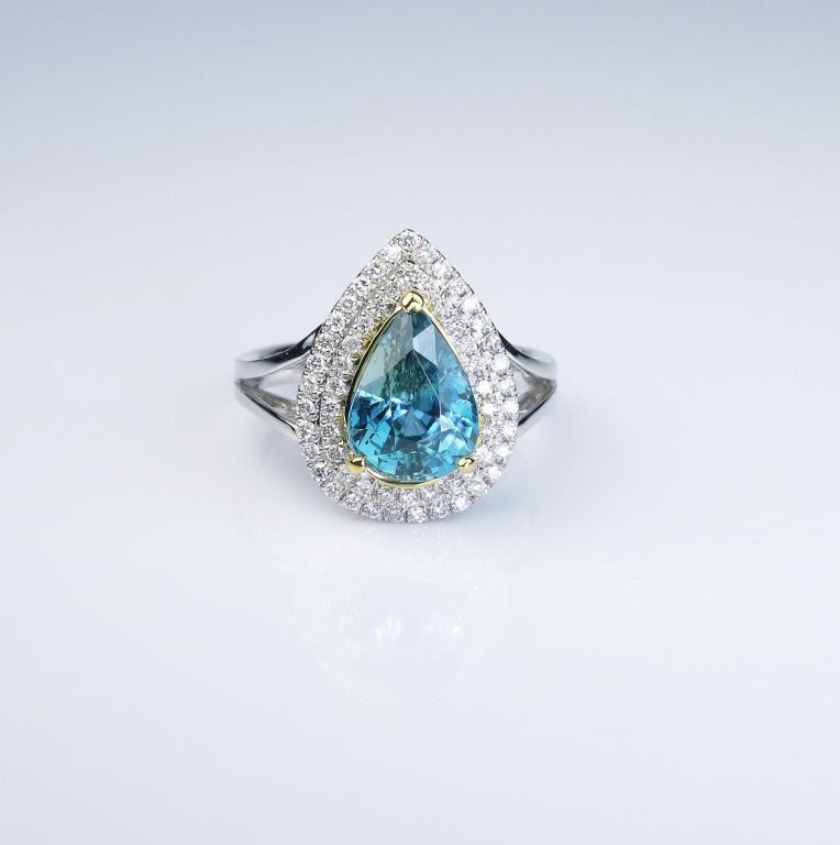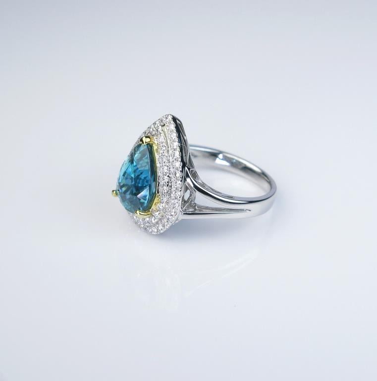 Lot 275b Dazzling Fine Blue Zircon and Diamond Ring with pear shaped halo style setting featuring an approx