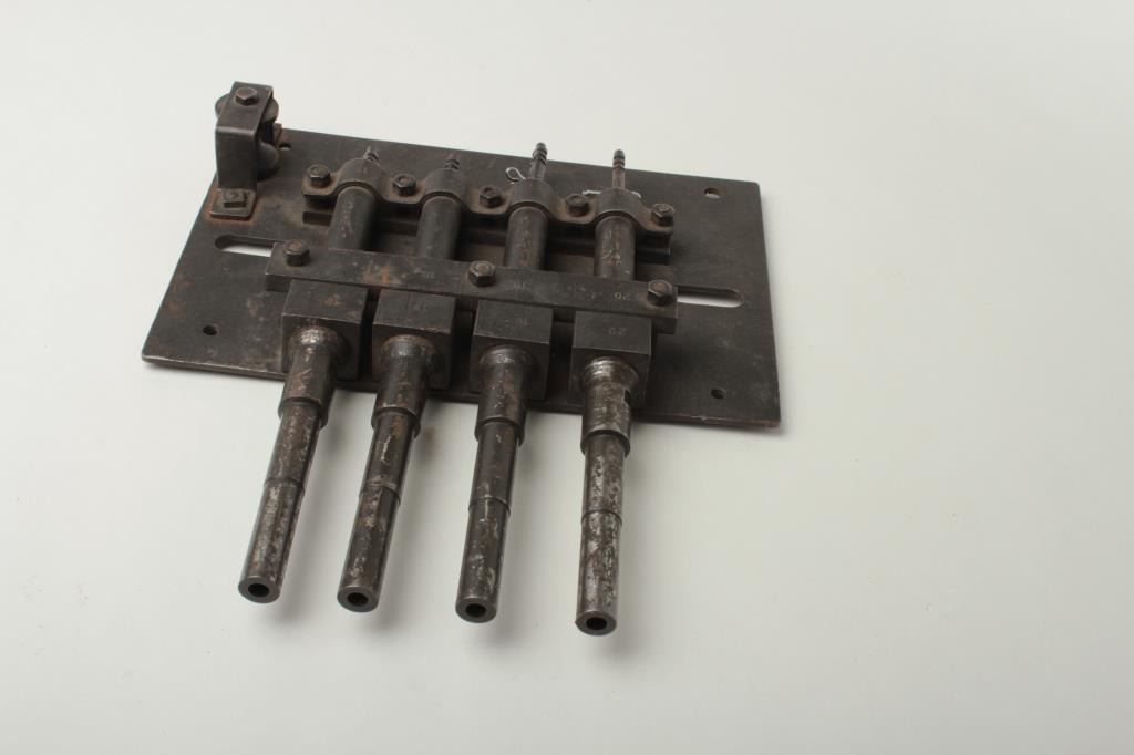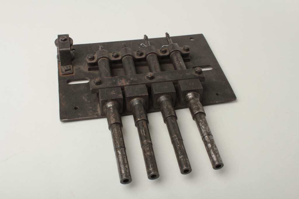 Lot 281 A volley trap gun consisting of four firing pin devices bolted to a steel plate and threaded with