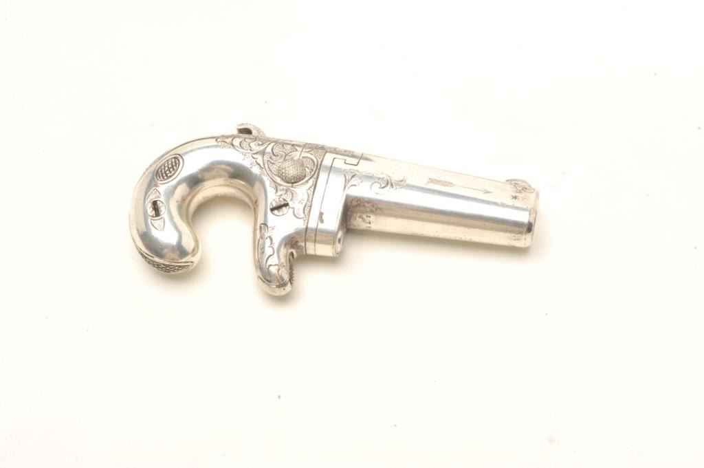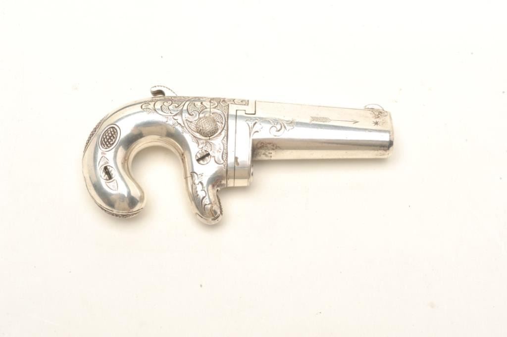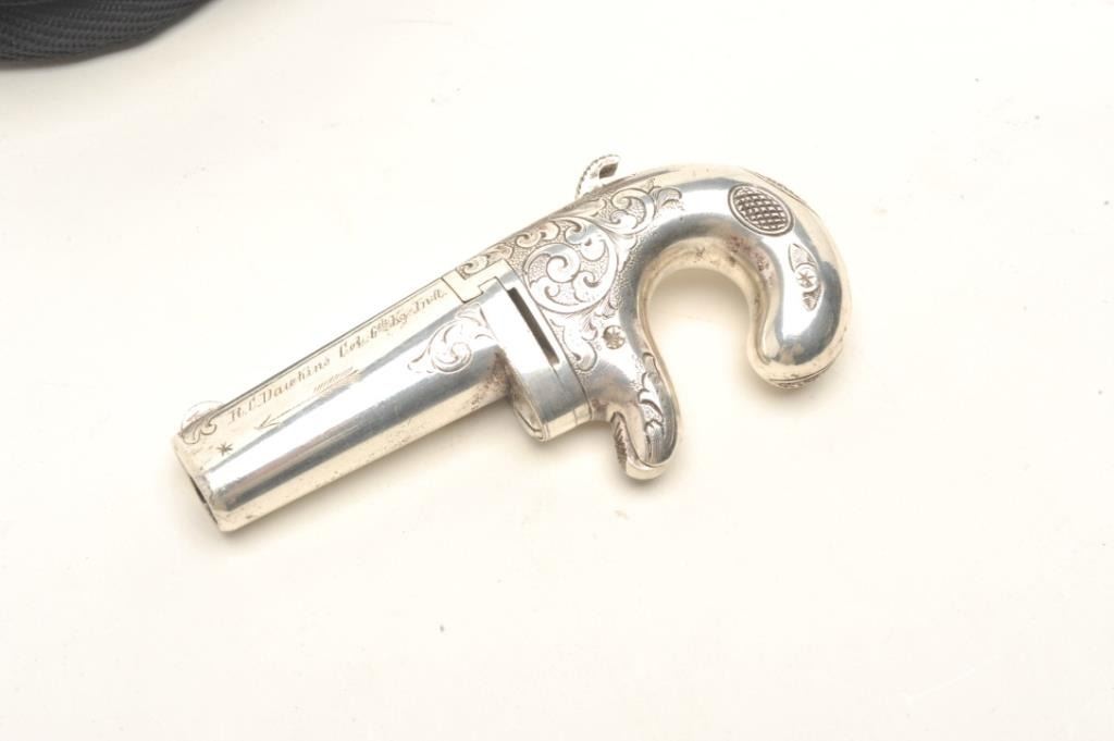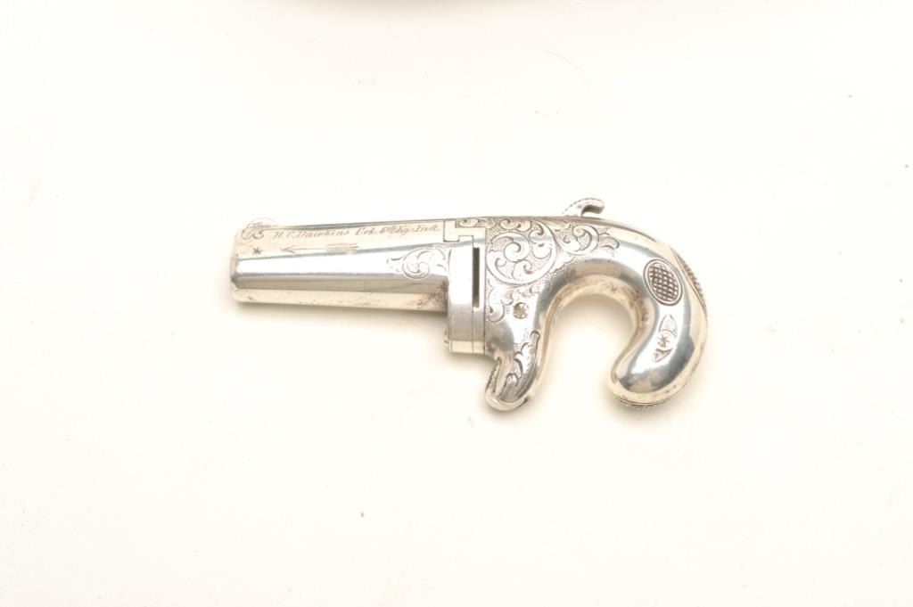 Lot 294 Factory engraved and silver plated Moore derringer and original to the period inscribed, “R.C. Daw