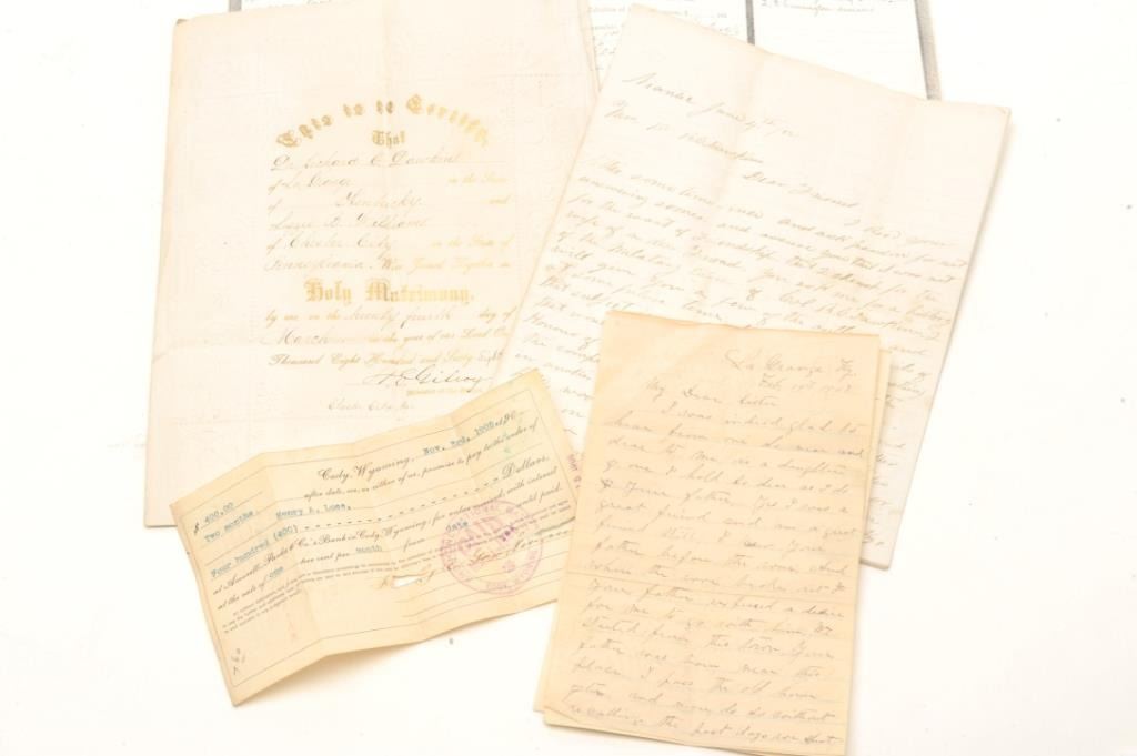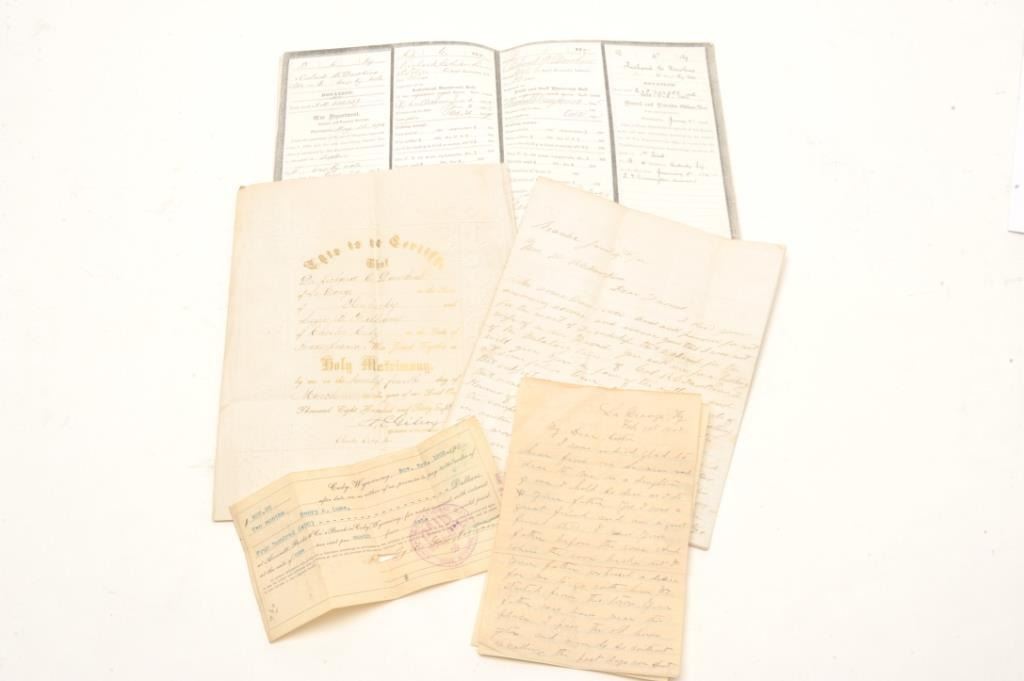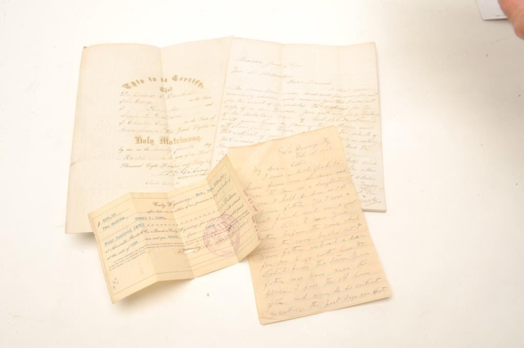 Factory engraved and silver plated Moore derringer and original to the period inscribed, “R.C. Dawkins, Col. 6th Kentucky infantry” with typical Nimschke or New York style engraving with script inscription.Accompanied by his sword sash, original commissions, and other Civil War papers. Dawkins was a fighting officer who distinguished himself a Shiloh, Stone Mountain and Chickamauga. S/N 1739. Nearlyall the old silver plate remains with minor loss and tarnish. The hammer finish has mostly flaked. Sharp with good markings. Very few Civil War inscribed cartridge derringers are known. (Antique) Est.: $2500-$5000