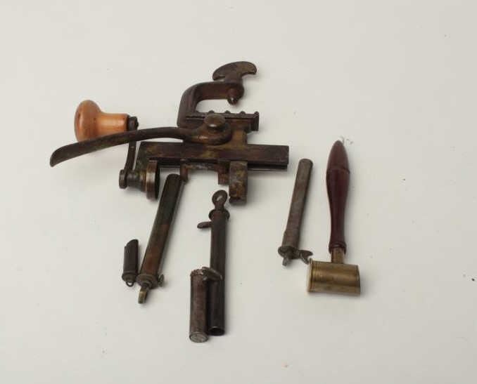Lot 295 Lot includes six powder measures and 1 shotgun reloading tool made in Paris. Est:$100-200