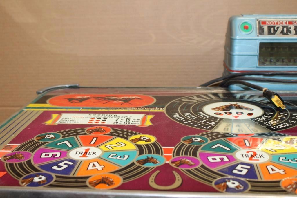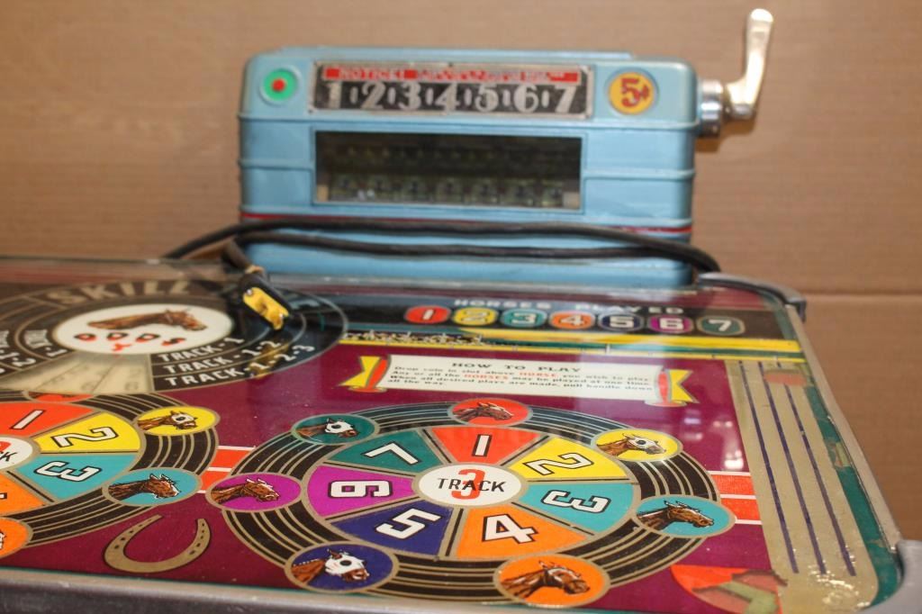 Lot 310 Rare 1930’s era large electric and mechanical horse race machine made of wood, metal and glass; fi