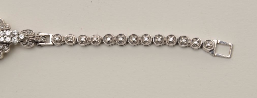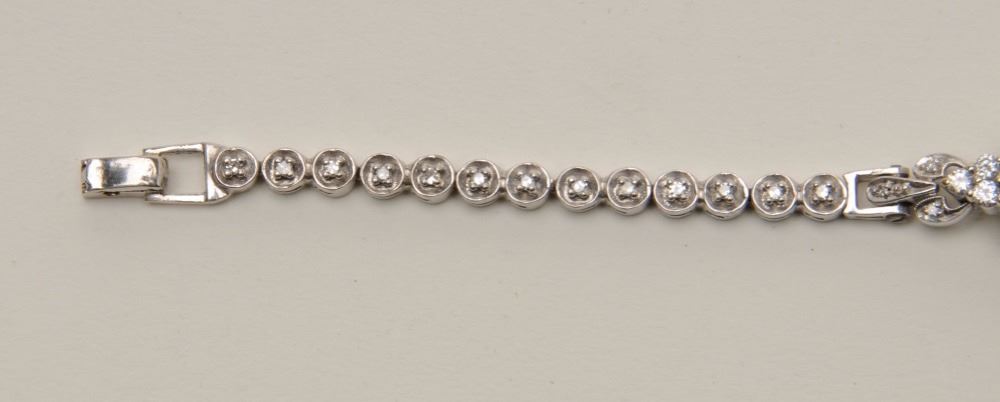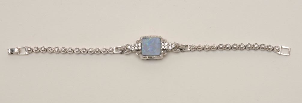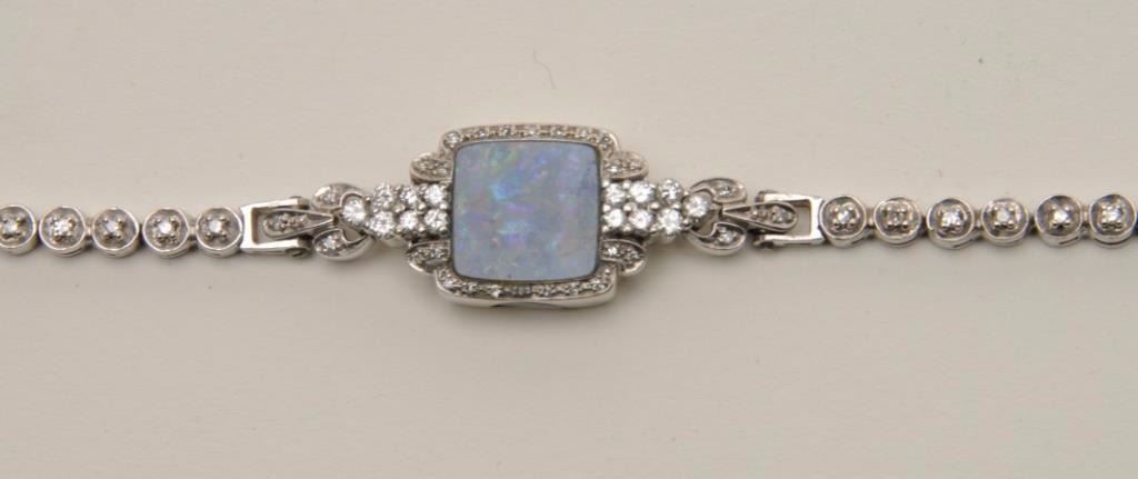 Lot 332 Ladies 14KT whit gold diamond and opal bracelet measuring 7” long. Made from vintage antique wrist