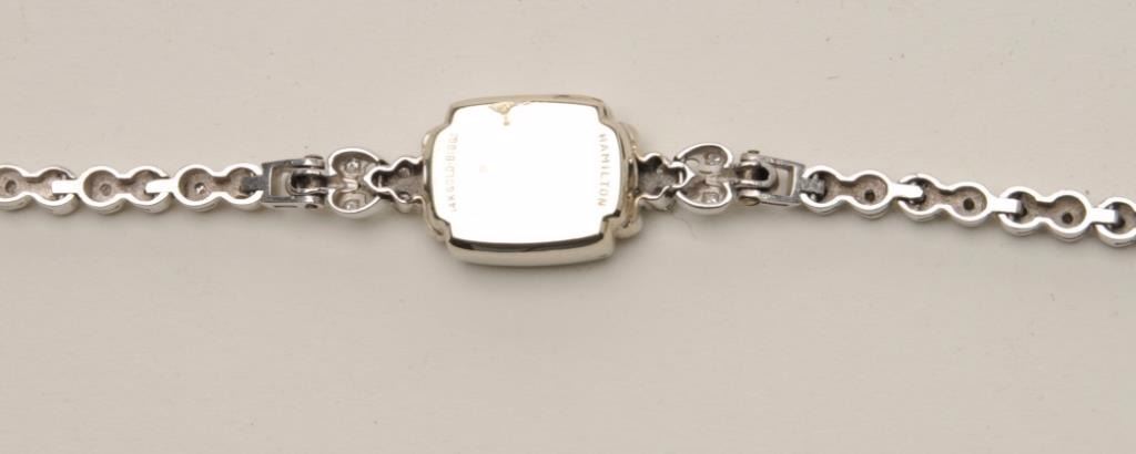 Ladies 14KT whit gold diamond and opal bracelet measuring 7” long. Made from vintage antique wristwatch on custom order. Stunning piece. Est.: $750-$1500