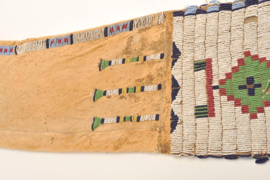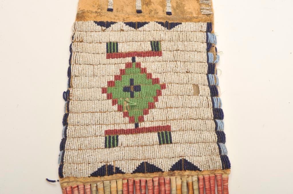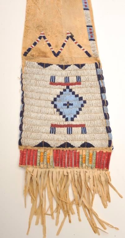 Lot 335 Beaded Sioux pipe bag circa 1890 to turn of the century. Measures approximately 28 ½” x 7 ¼” showi