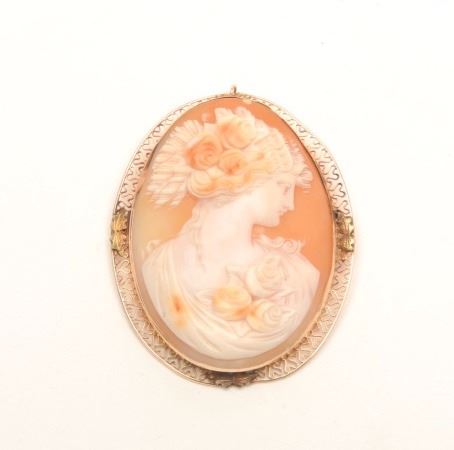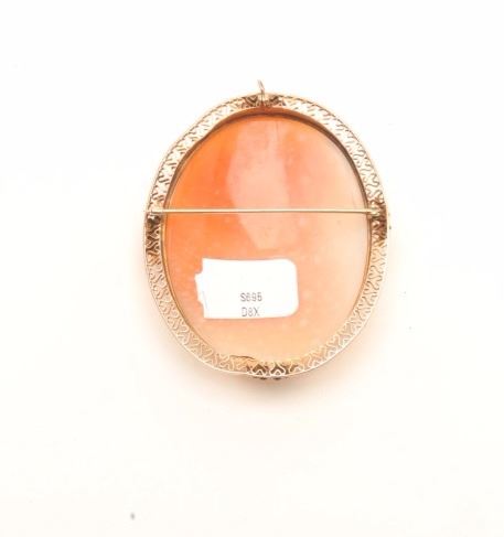 Lot 362 Antique carved Italian cameo in unmarked gold colored bezel circa 19th to early 20th century. Meas
