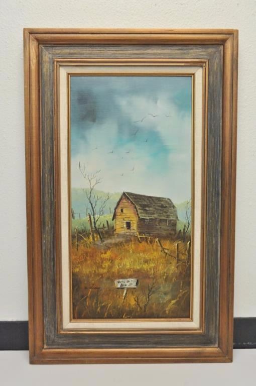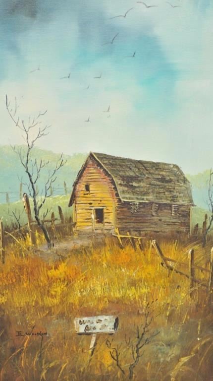 Lot 367 Original oil on canvas signed lower left “E. Woodson”. Measures approximately 24” x 12”. Nicely fr