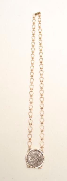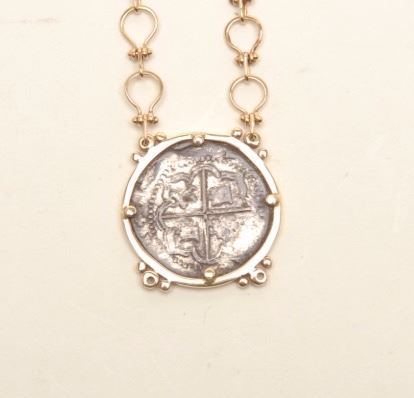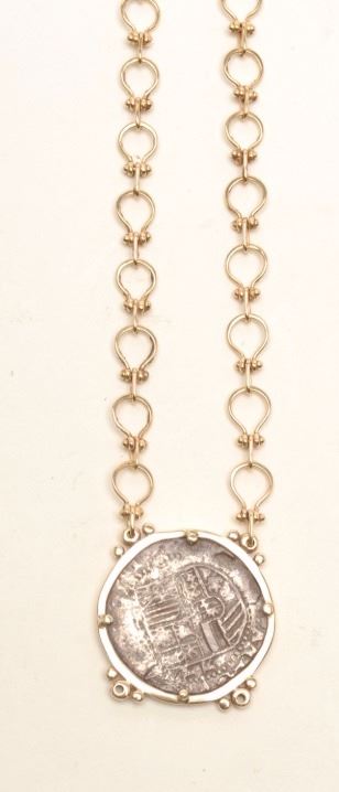 Coin necklace from the Spanish shipwreck Nuestra Senora De Atocha, with Certificate of Authenticity; recovered by Treasure Salvors, Inc. Est.: $600-$1,200.
