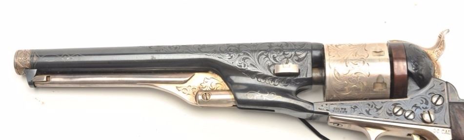 Lot 380 Italian made Colt addressed copies of Colt 1861 Navy revolvers fully engraved and converted to car