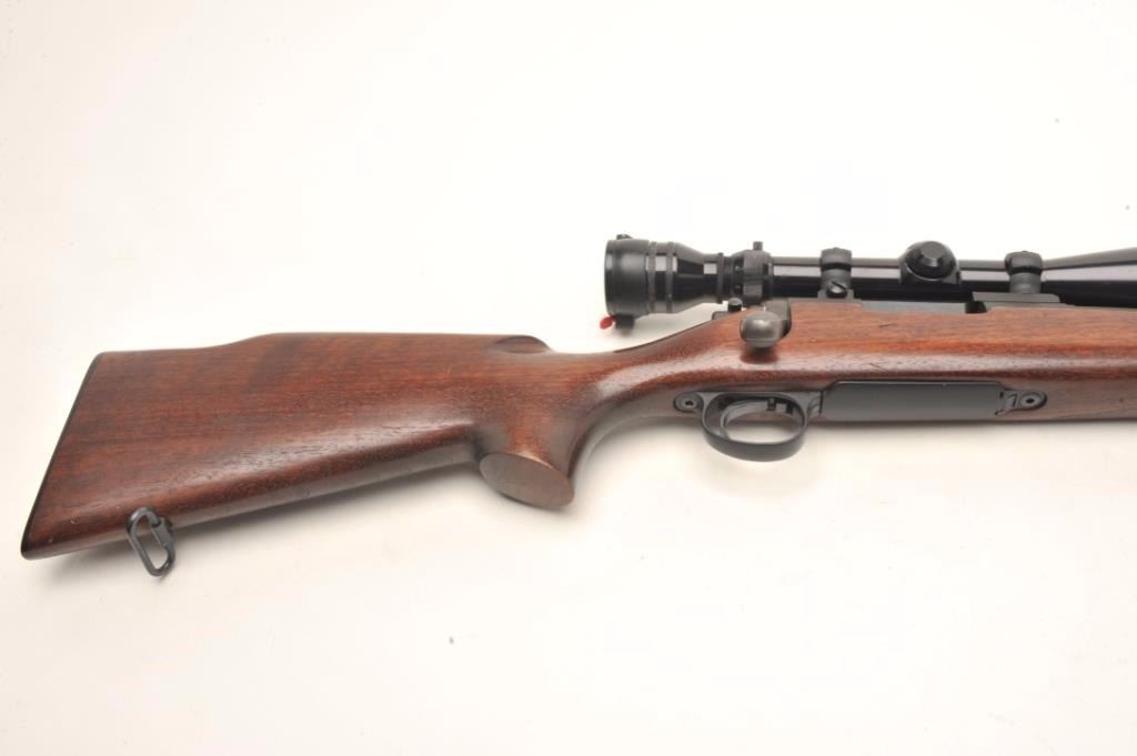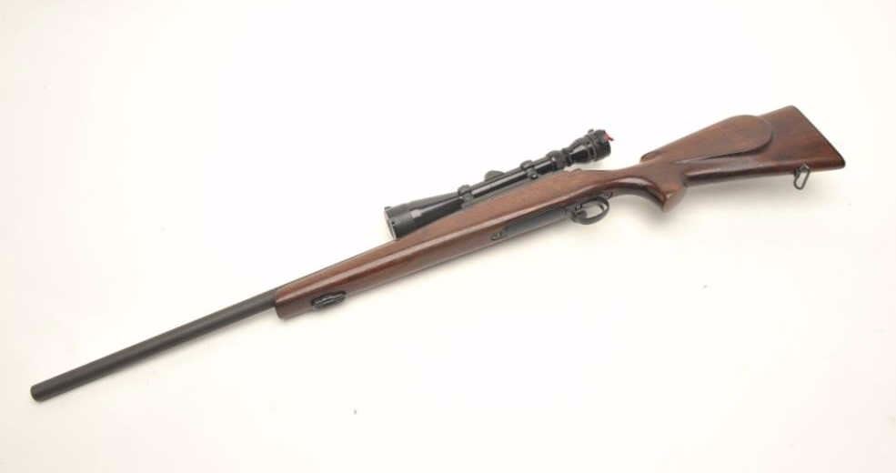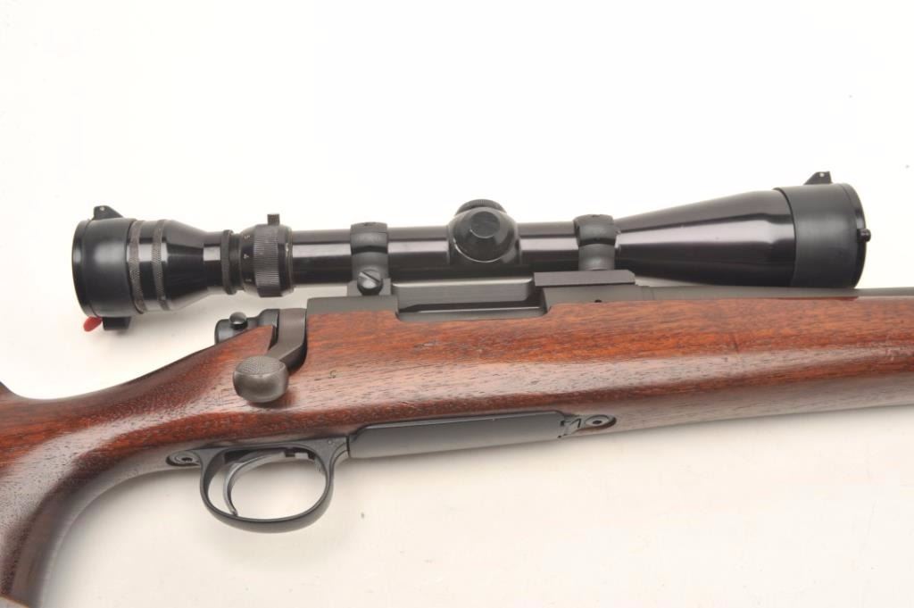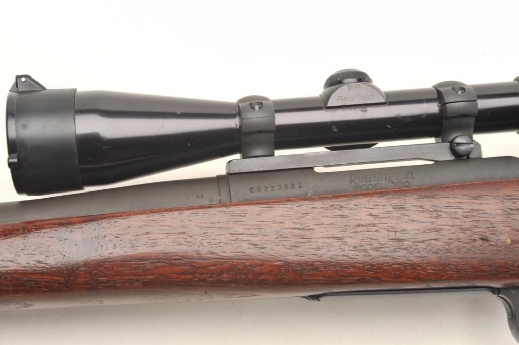 Remington Model 700 Police bolt action rifle, .223 REM. caliber, 24” round barrel, low luster finish, wood stock, S/N C6223681; mounted with a Redfield 3X-9X scope displaying crisp optics. This rifle is inexcellent condition showing little if any use and minimal handling; mirror bore, crisp action, sharp markings and fine wood stock. Accompanying the gun is a copy of an article on Remington Law Enforcement Products thatcovers the history of this and other specialty 700 Models; in part, the section on the Police rifle states “Since 1986 Remington has been quietly producing a 700 Police Rifle. Many Remingtons have been sold over the years for such purposes. Even though Remington recommends several of their rifles for police use, the 700 Police Rifle specifically addresses that market. It is very similar to the original M40 MarineSniper Rifle. The Police Rifle offers a choice between the .223 and the .308 Win. The stock is walnut with a smooth low luster finish. It is a Monte Carlo Style with cheekpiece. Exterior is of a dull matte