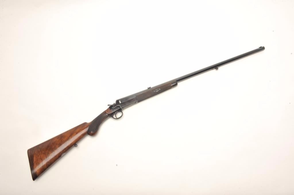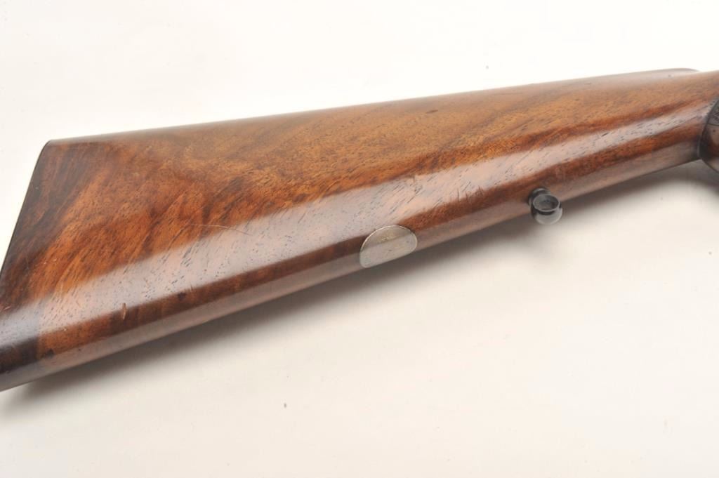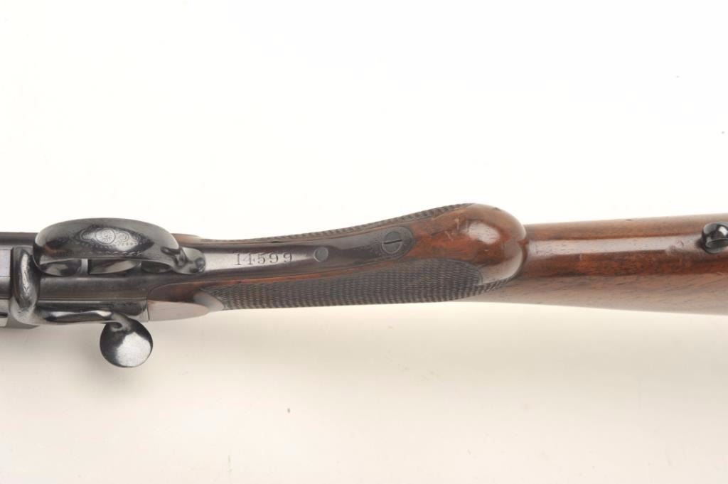 Lot 414 T. Bland & Sons single shot rook rifle, approximately .24 caliber, serial #14599. The rifle is in