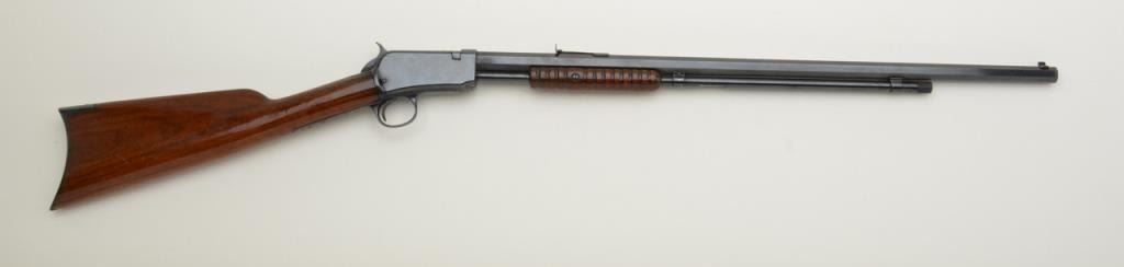 Winchester Model 90 pump action rifle, .22 short cal., 23-1/2” barrel, re-blued finished, re-finished wood stocks, #692136 in overall good condition as re-condition with a good action, markings and wood, bore issomewhat rough. Est.: $175-$350.