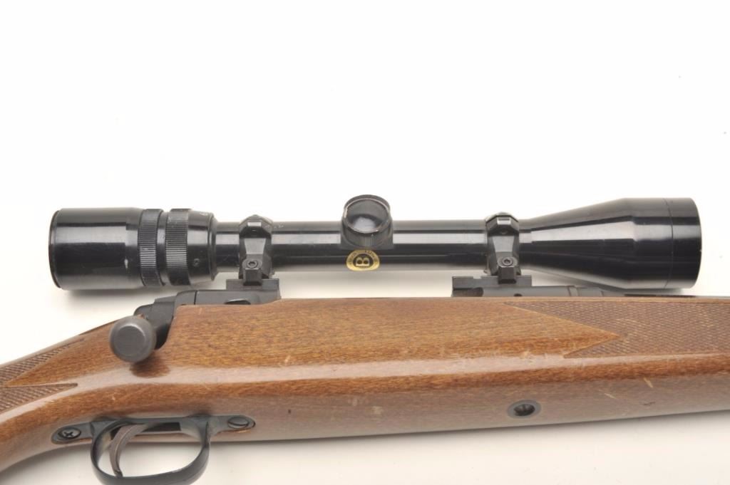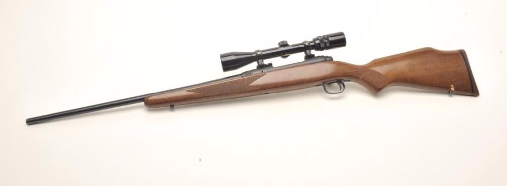 Savage Model 110 bolt action rifle, .270 Winchester caliber, serial #F037337. The rifle is in good overall condition with a 22” barrel. The barrel and receiver retain the majority of their blued finish with lightsurface erosion and small areas of surface rust noted. The smooth wood stock is in good condition with dents and compressions consistent with field use. The butt stock ends with a smooth, rubber recoil pad. Thebore is fair, the action crisp and markings are legible. The rifle is topped with a Bushnell Sport view 3 x 9 variable power scope. Est.: $175-$350. (Modern).