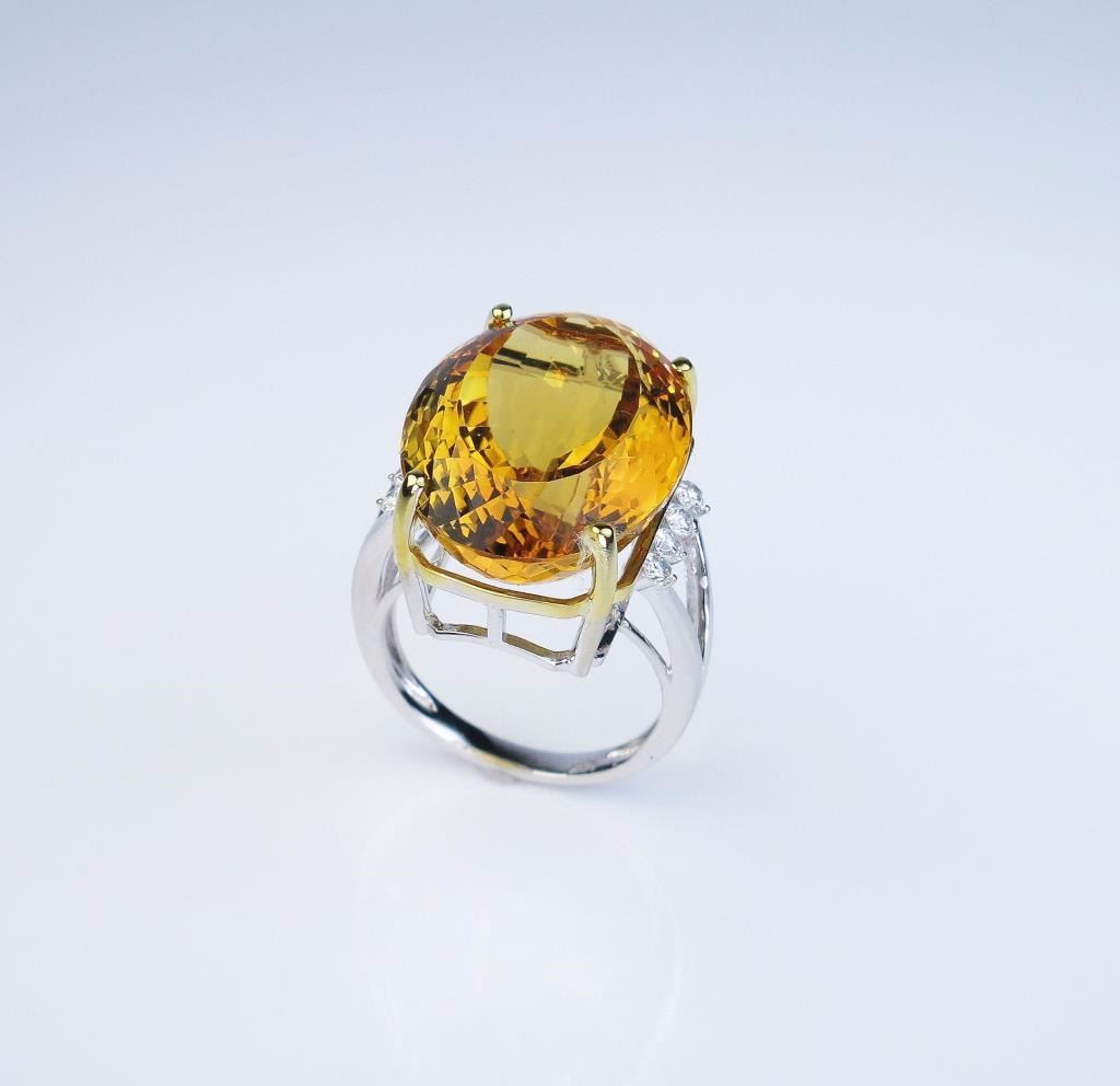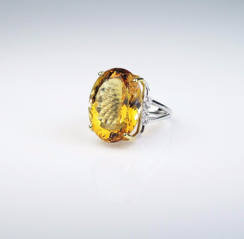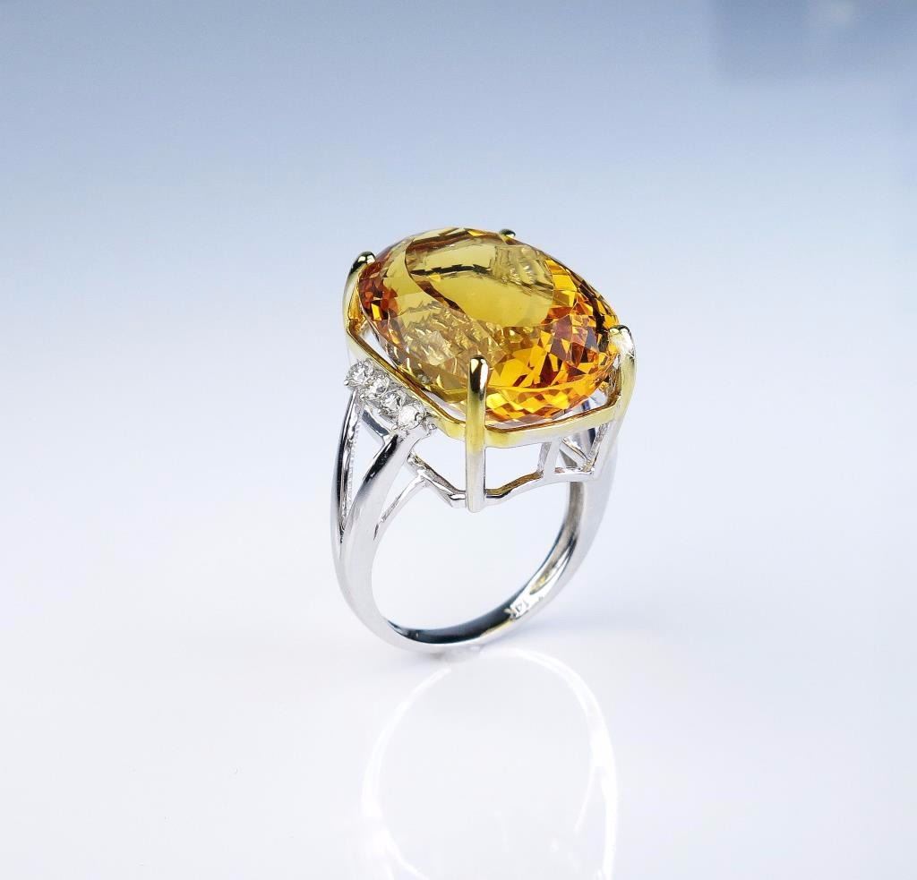 Spectacular ladies ring set with a large Citrine weighing approx. 30.00 -40.00 carats and 8 side ‘IDEAL’ cut diamonds weighing approx.. 0.20 carats of G-H colors and VS/SI clarity set into two-tone 14 karat gold.Retail $3,000-$4,000 Estimates $1,800-$3,000 Nice