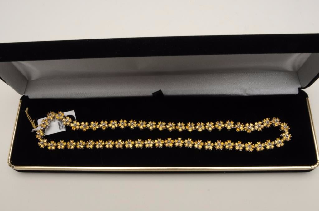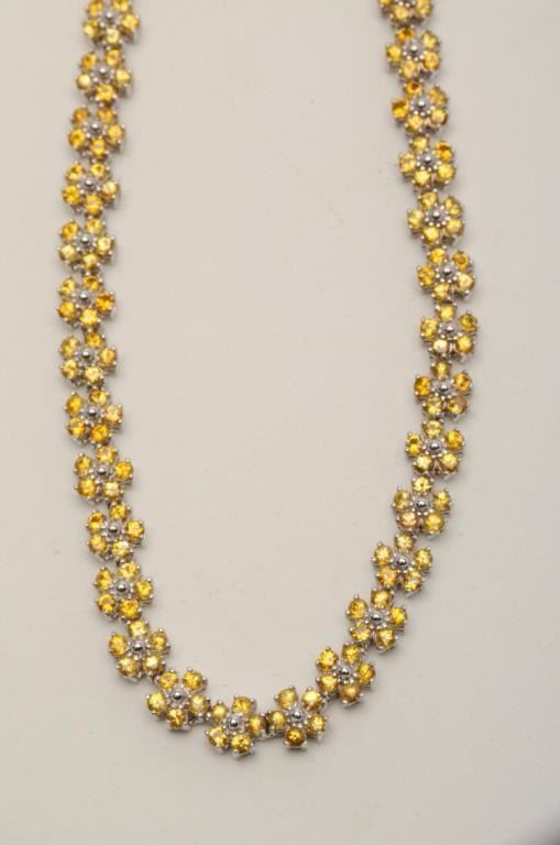One well crafted 14k white gold necklace set with 274 yellow sapphire weighing approx 2.5 carat. Est. $5,000-$10,000.