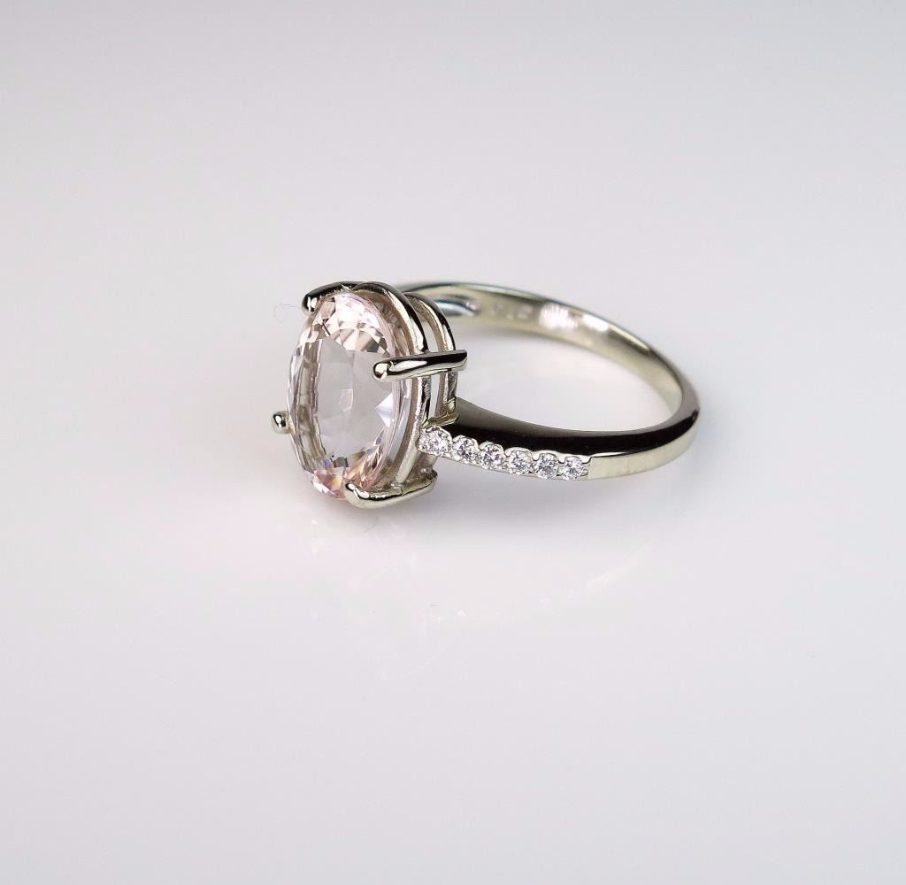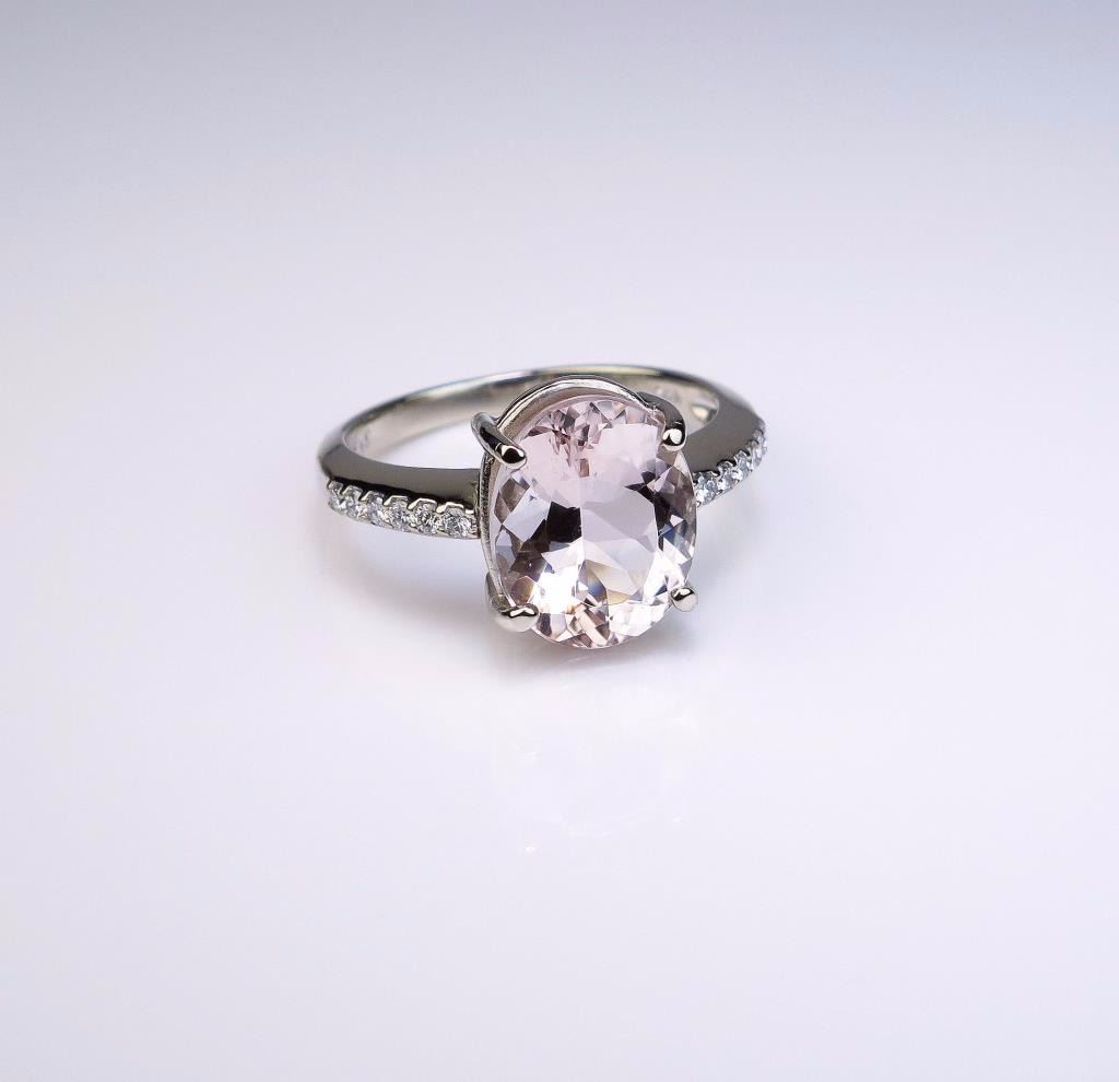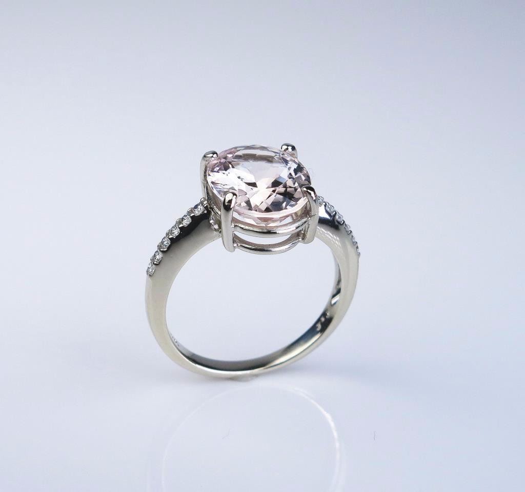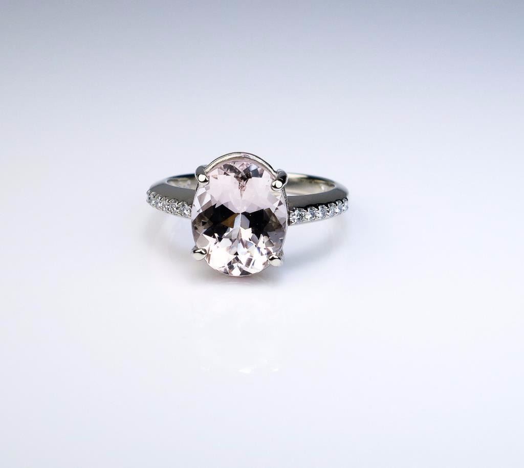 Lot 493 Elegant Peach colored Morganite and Diamond Ring featuring a 4.00 carat morganite and 12 ‘IDEAL’ c