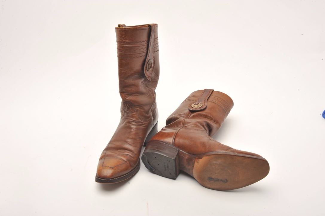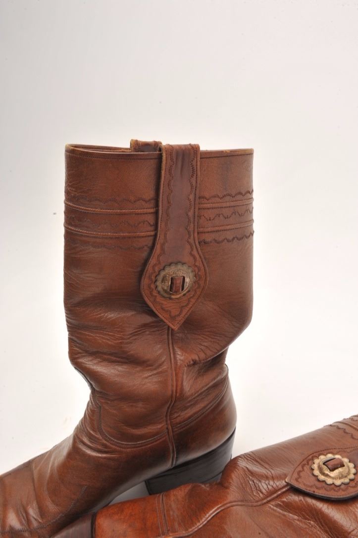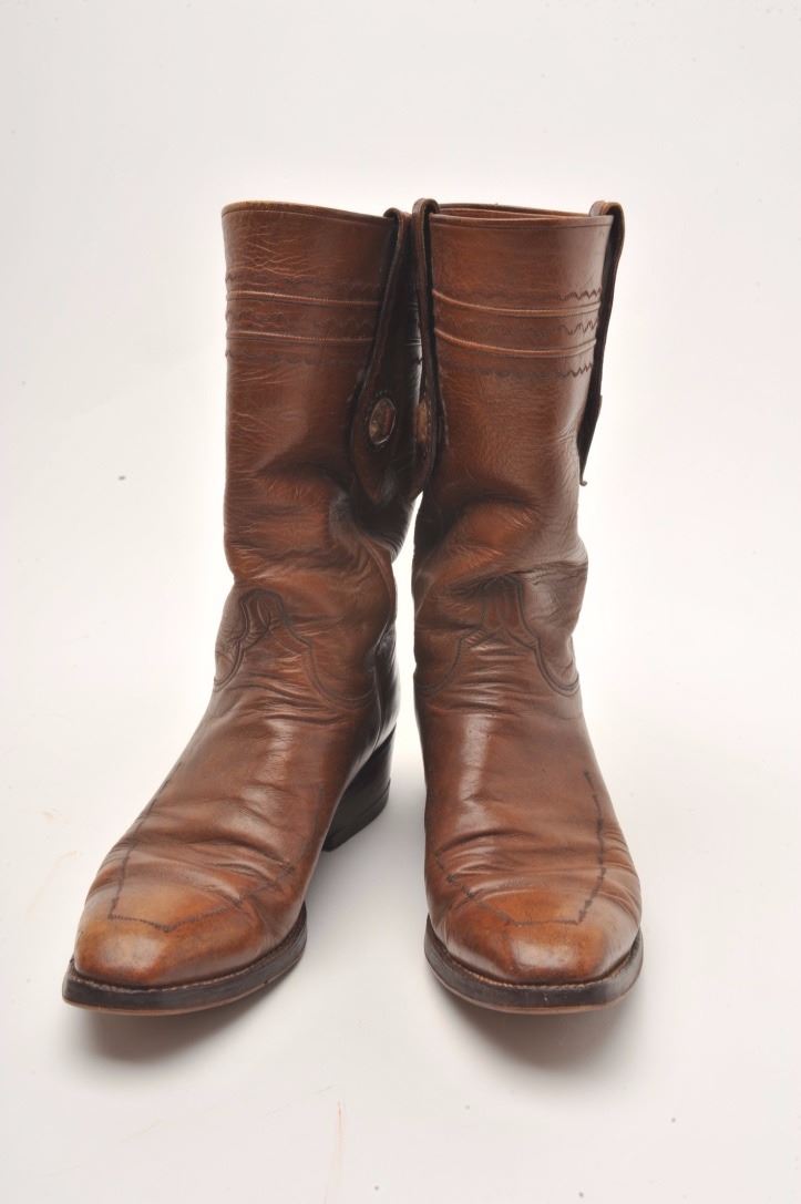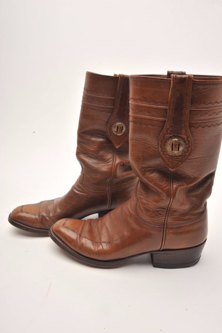 Vintage size 9.5 Lucchese boots. The premier boot made in the U.S. since 1883. Sold new in the late 1950s. In very good to excellent condition and have been worn. Shows sterling conchos on each side of the boots. Theseboots are now made overseas. Cost approximately $500 in 1950s and over $2000 today. Est.: $300-$600