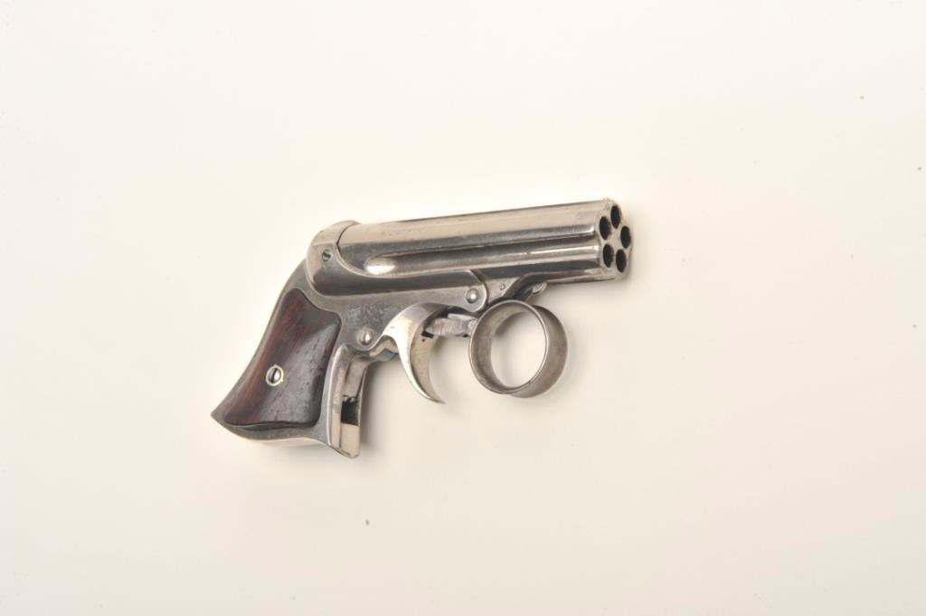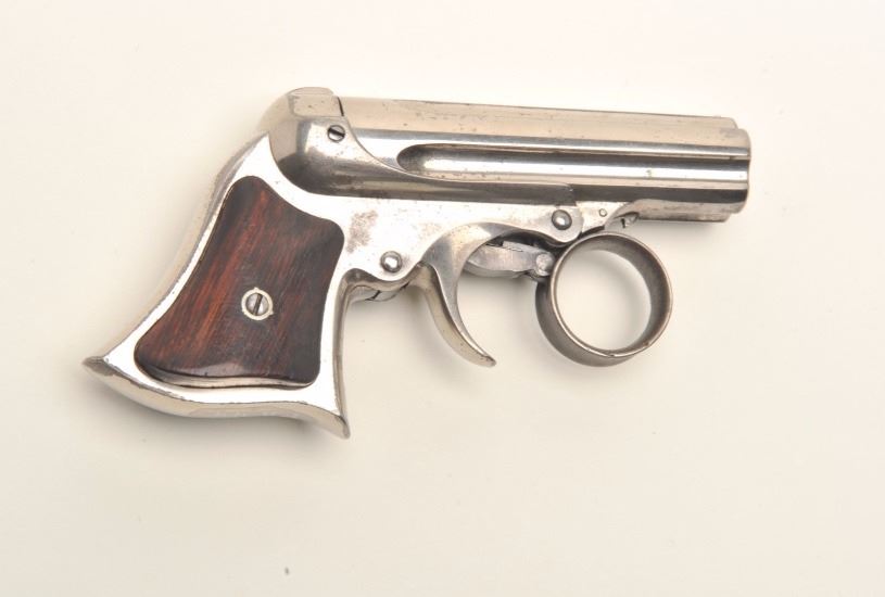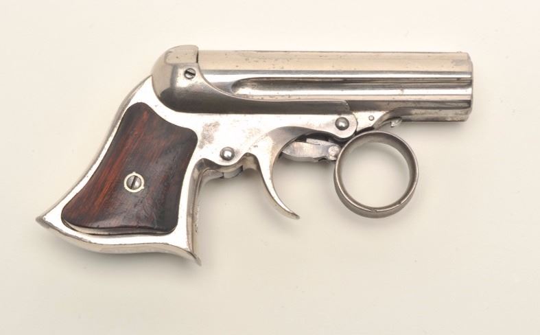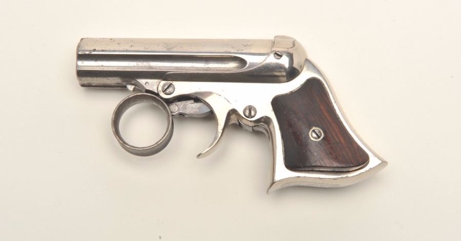 Lot 572 Remington-Elliot 5-shot derringer, .22 caliber, 3” barrels, ring trigger, nickel finish, rosewood