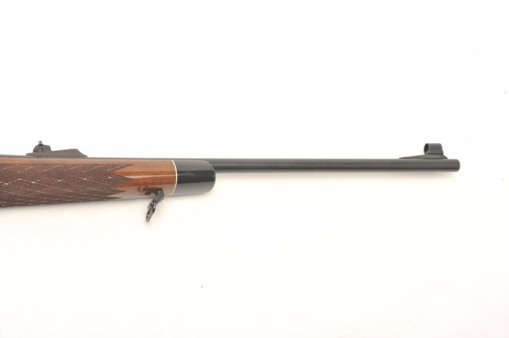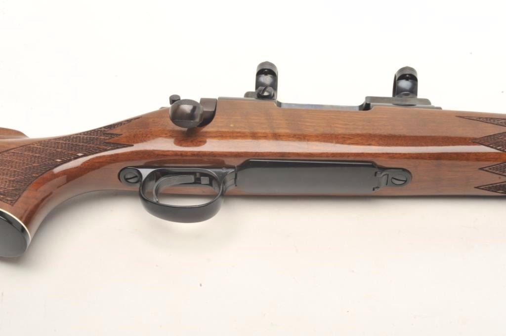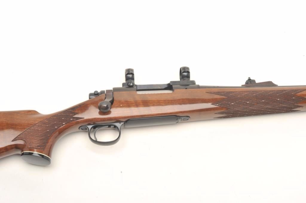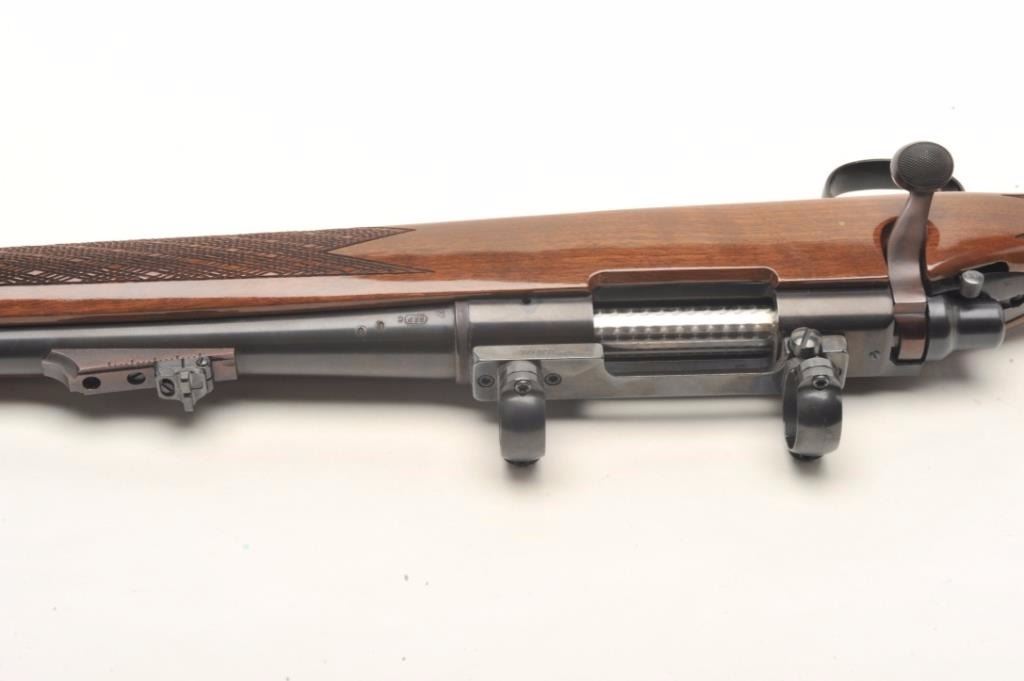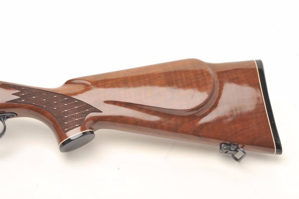 Remington Model 700 bolt action rifle, .17 Remington caliber, serial #C6352426. The rifle is in very good overall condition showing little use. The rifle has a 24” barrel with hooded front and adjustable rearsights. The barrel and receiver retain nearly all of their blued finish, showing only handling marks. The rifle is topped with a Leupold one-piece scope mount and rings. The checkered wood stock is in verygood condition as well with only small storage marks noted. The buttstock includes sling swivels and ends with a plastic, Remington marked butt plate. The bore is very good, the action crisp and markings aresharp. Est.: $700-$900. (Modern).