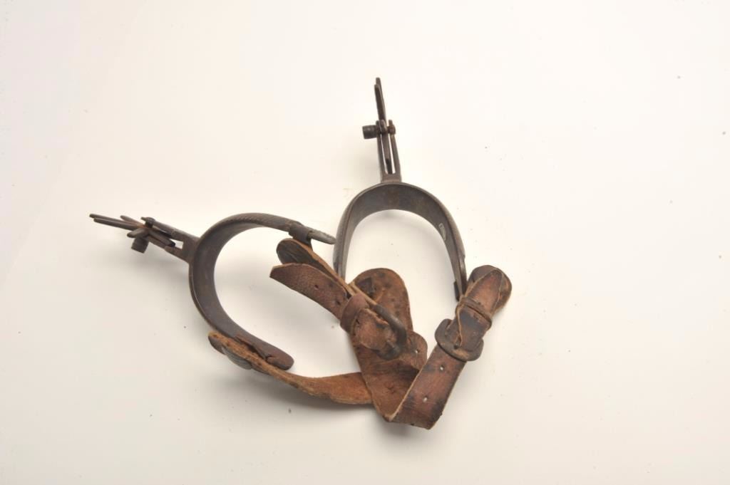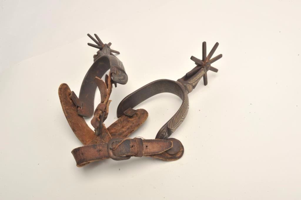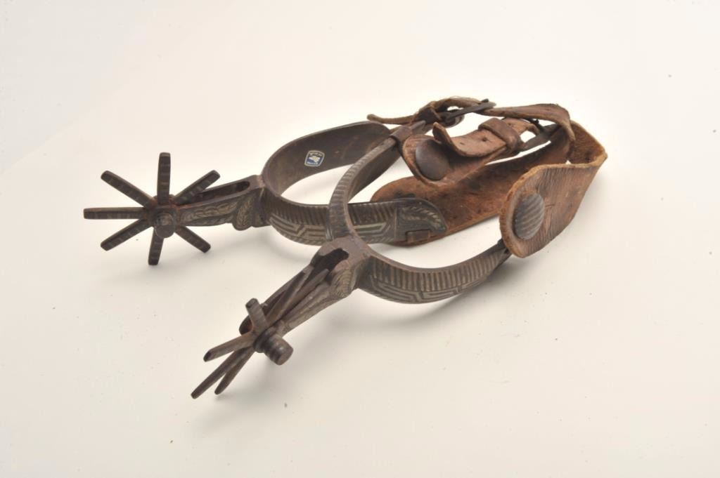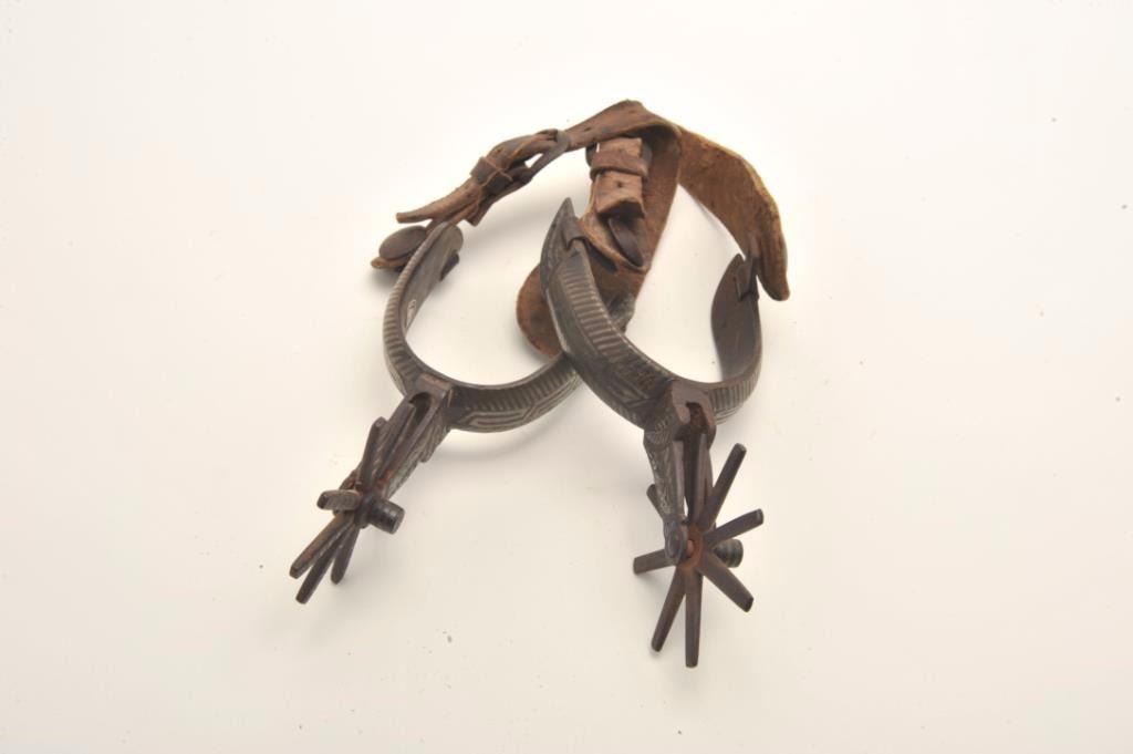 Lot 598 Classic 20th century Mexican spurs with old straps. Uncleaned. Est.: $100-$200