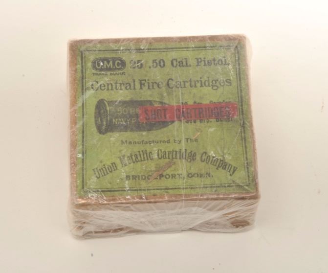 Full box of UMC .50 caliber Navy pistol shot cartridge. Est.: $150-$300.
