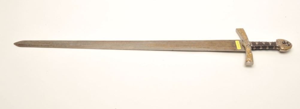 Lot 652 Older reproduction of King Richard’s sword, approximately 39” overall with a 33” decorated blade.