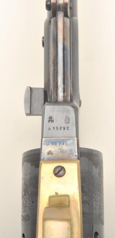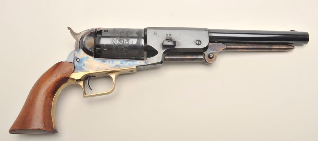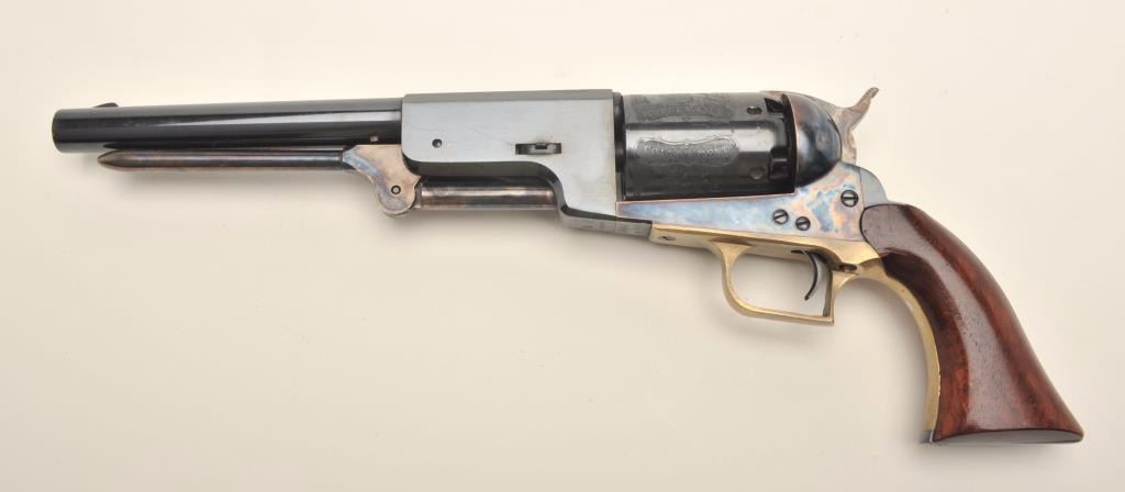 Italian modern copy of a percussion Colt Walker revolver, .44 caliber, blued and case hardened with wood grips, S/N A15792, in overall near fine condition. (percussion). Est.: $150-$300.