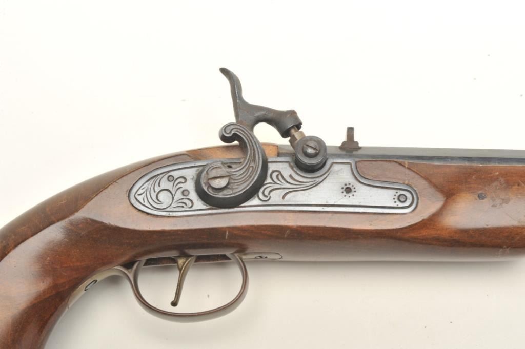 Lot 674 Spanish Ardesa black powder percussion pistol, approximately .45 caliber, serial #010963. The pis