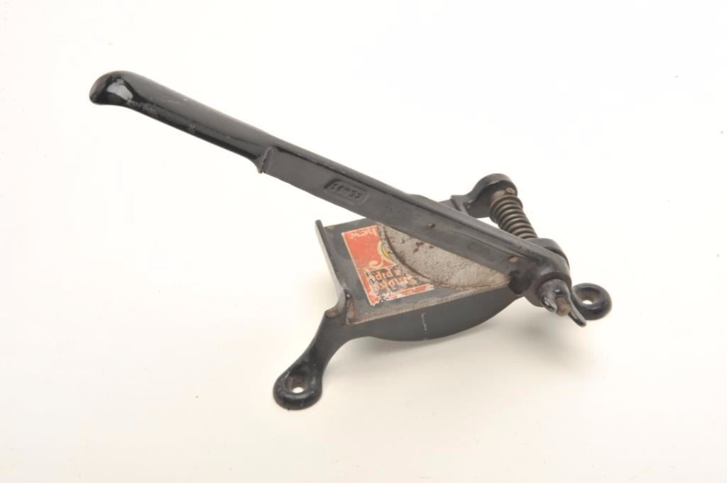 Lot 678 Antique small metal tobacco plug cutter, marked “16031” on the underside of base, “No 0” on the ha